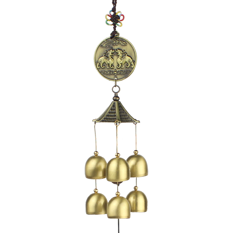 新款純銅鈴鐺風鈴 雙層六鈴鐺 七鈴鐺 總長55cm左右 寬度8cm左右 單個鈴鐺直徑2.8cm 招財神獸。中國古代風水學者認為貔貅是轉禍為祥的吉瑞之獸。從古至今,上至帝王、下至百姓都很注重收藏和佩戴貔貅,貔貅除了招財、開運、辟邪的功效之外,還有鎮宅、化太歲、促姻緣等作用。中國傳統有裝飾“貔貅”的習俗,貔貅寓意豐富,人們相信它能帶來歡樂及好運