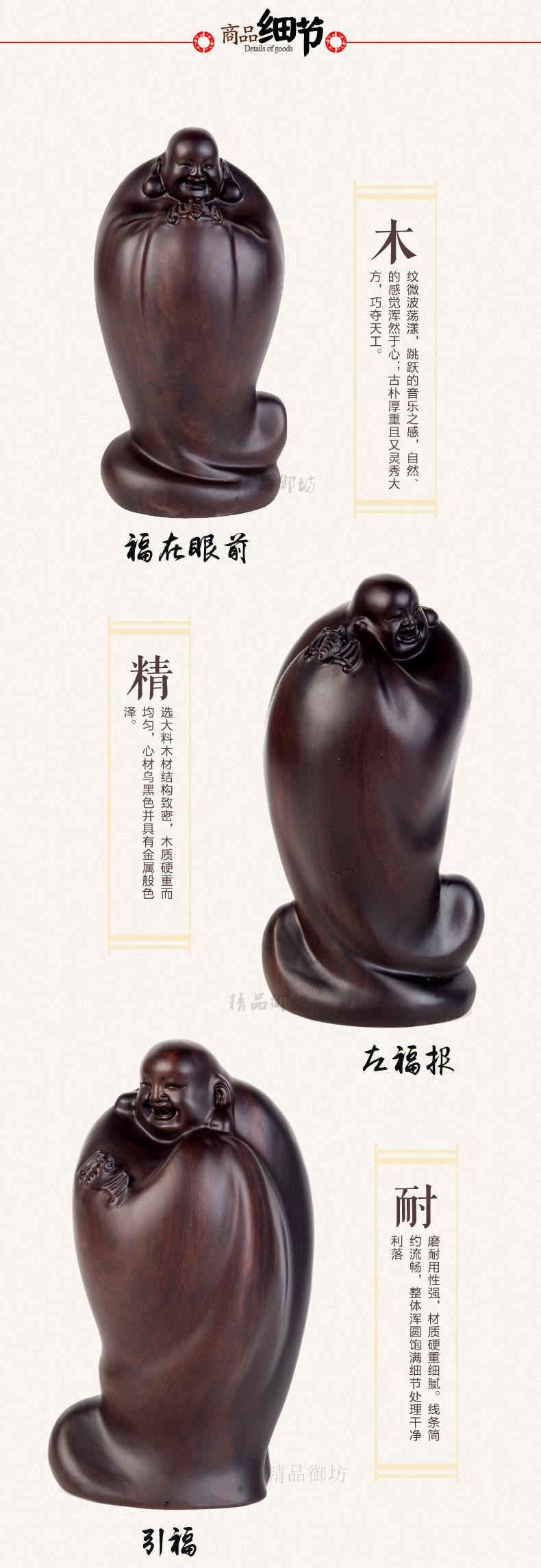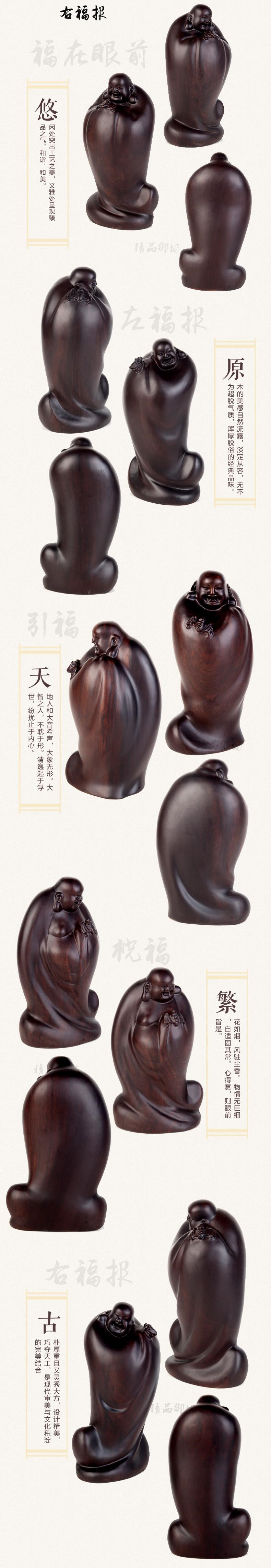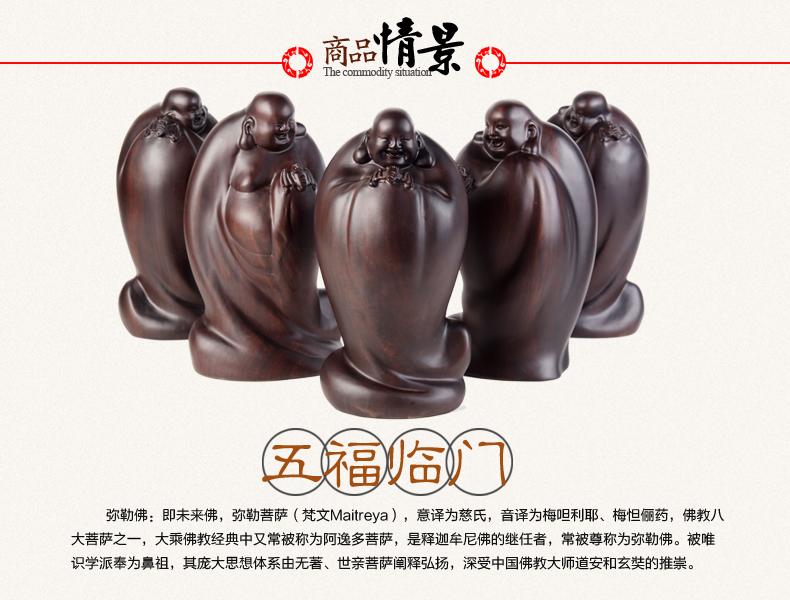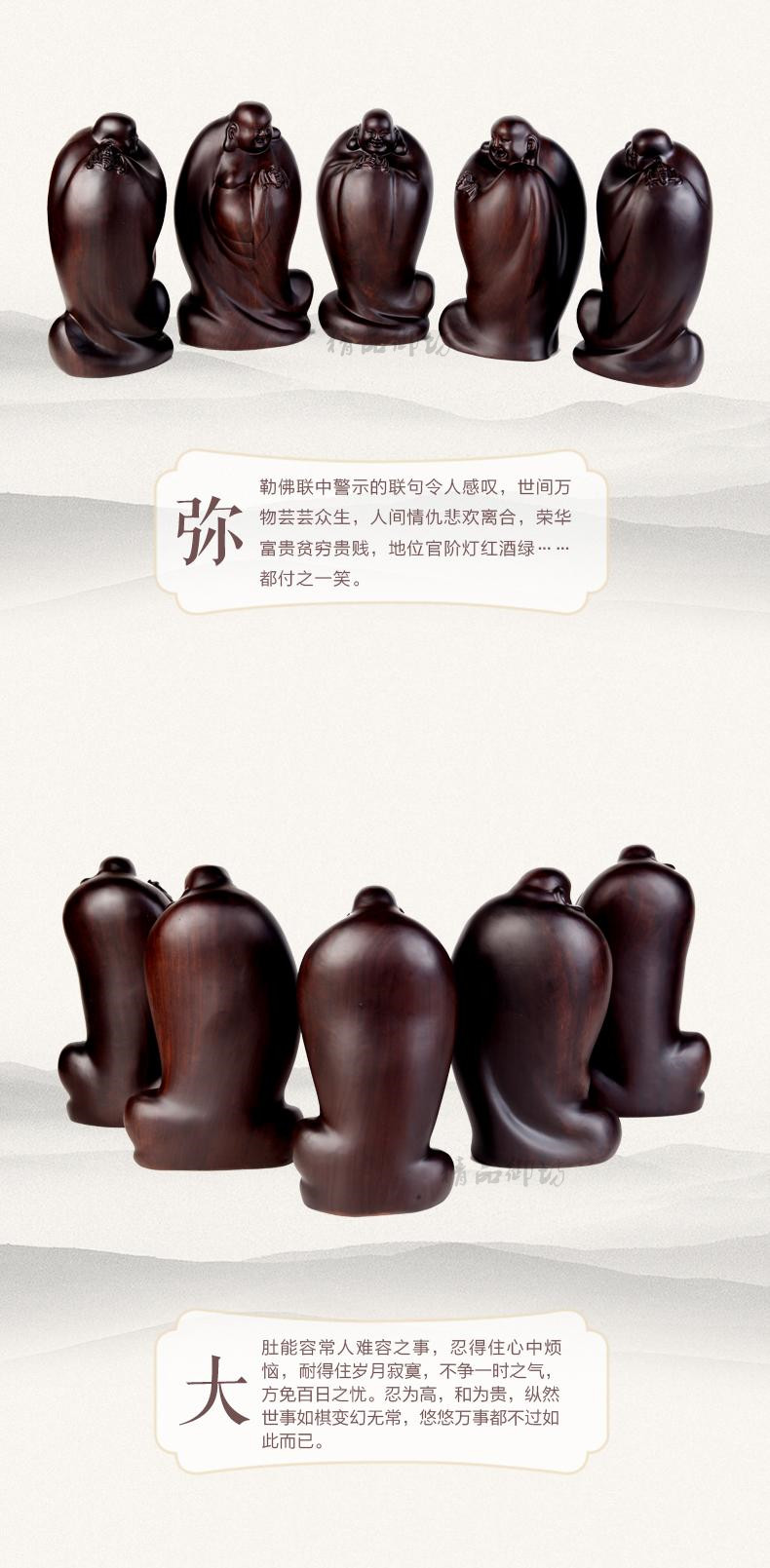 17cm單尊(一套五福請拍5尊)彌勒佛木雕佛像五福臨門擺件福在眼前笑臉彌勒佛黑檀木雕裝飾禮品