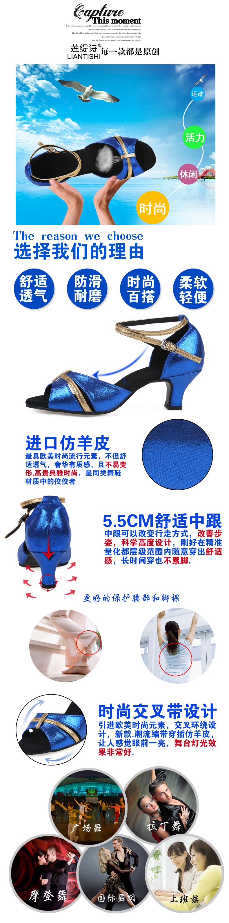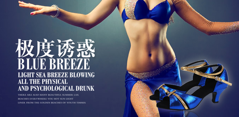 [2]寶藍色室外膠底34銀色拉丁舞鞋魚嘴涼鞋女成人軟底中跟交誼恰恰舞廣場舞夏季跳舞鞋