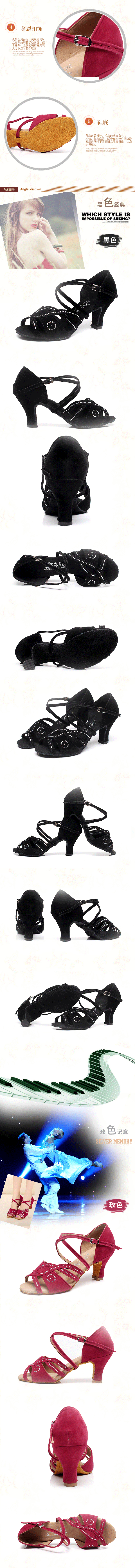 魅力黑室內牛皮毛底33花之影熱賣拉丁舞鞋中跟緞面廣場舞鞋軟底中跟交易舞特價一件