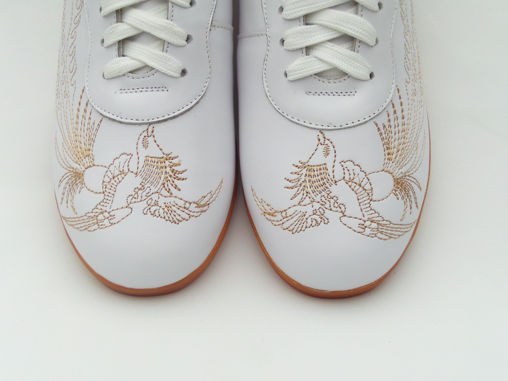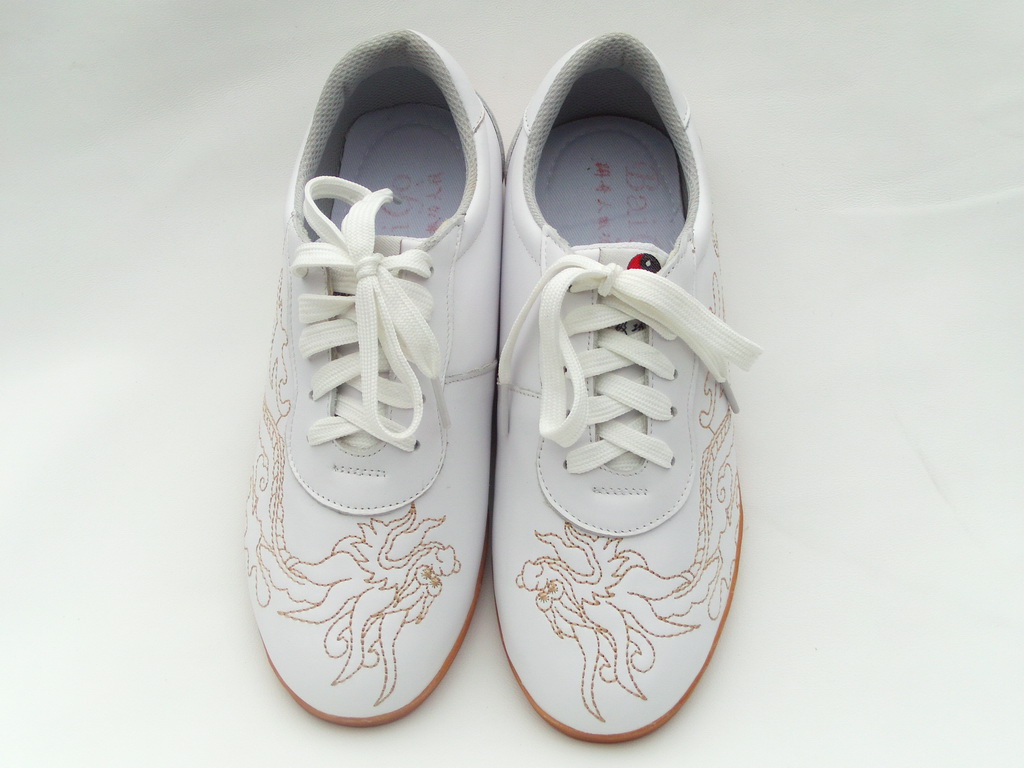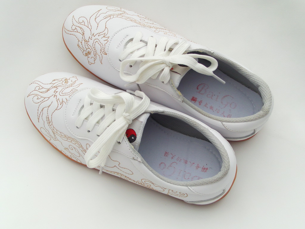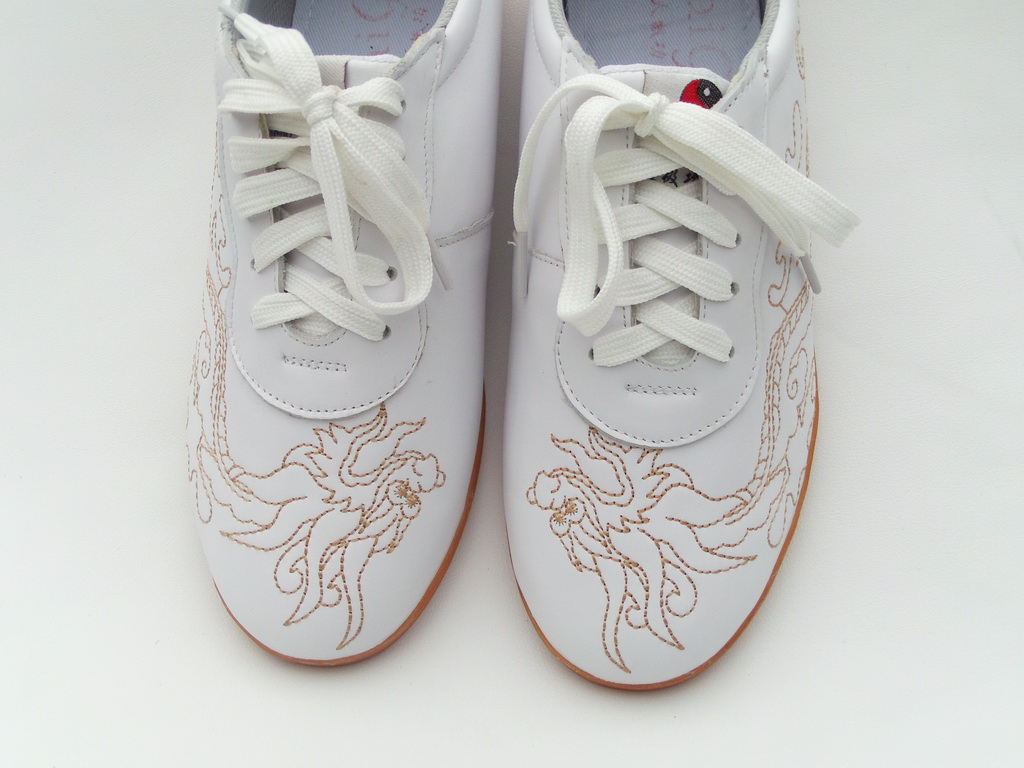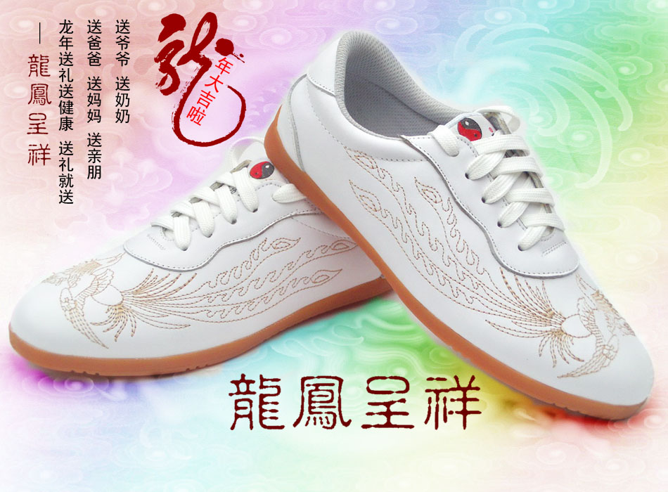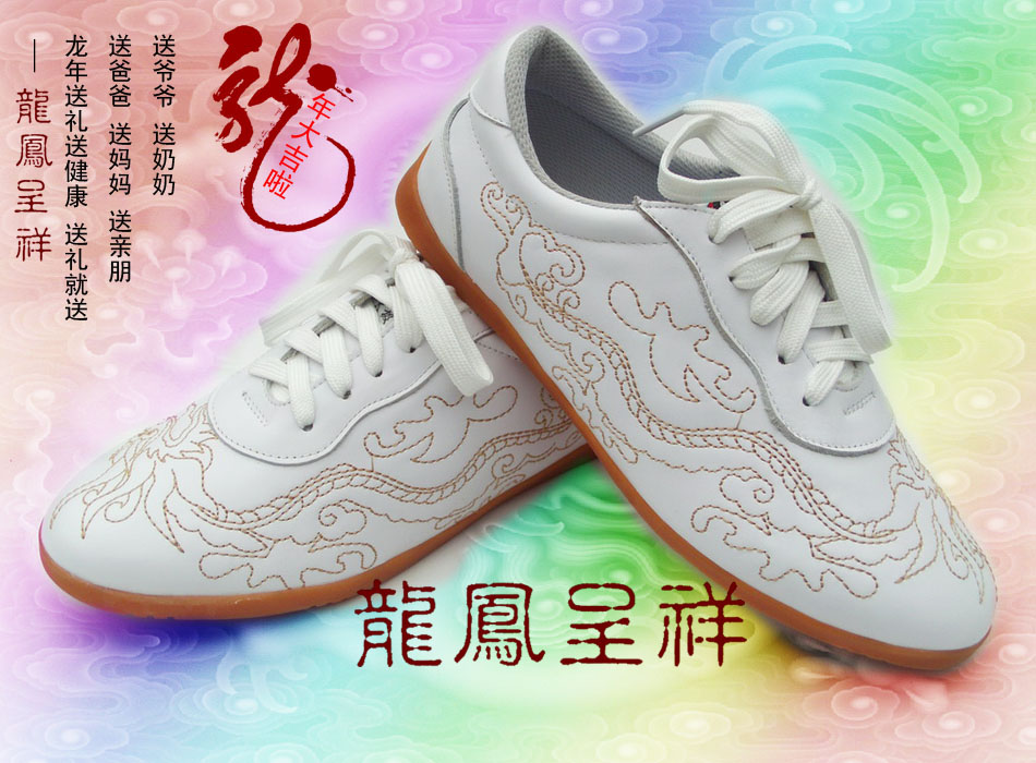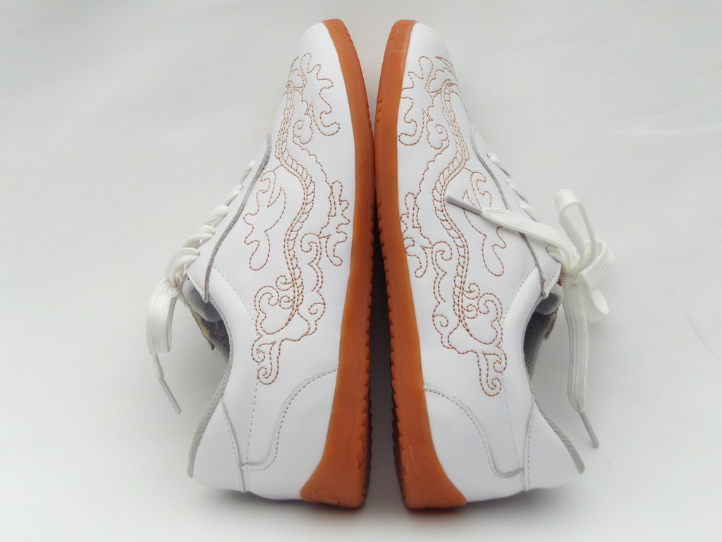 鳳舞九天茉莉白色33喬尚足拜哥太極鞋 龍鳳呈祥之龍行天下 頭層軟牛皮牛筋底武術鞋