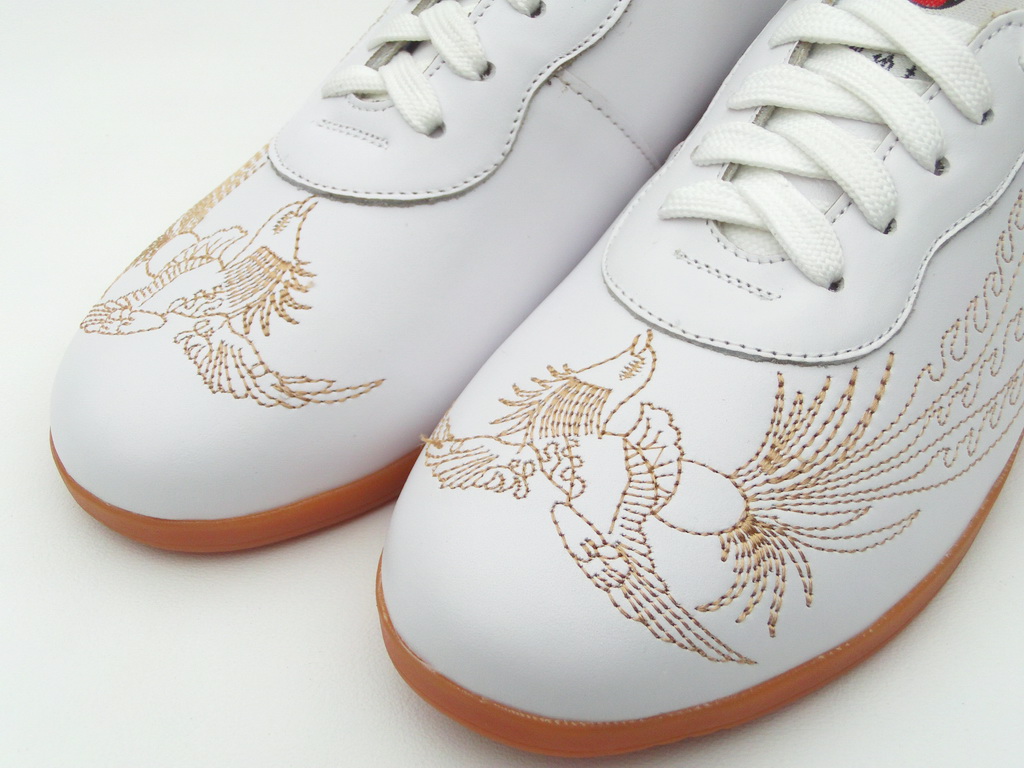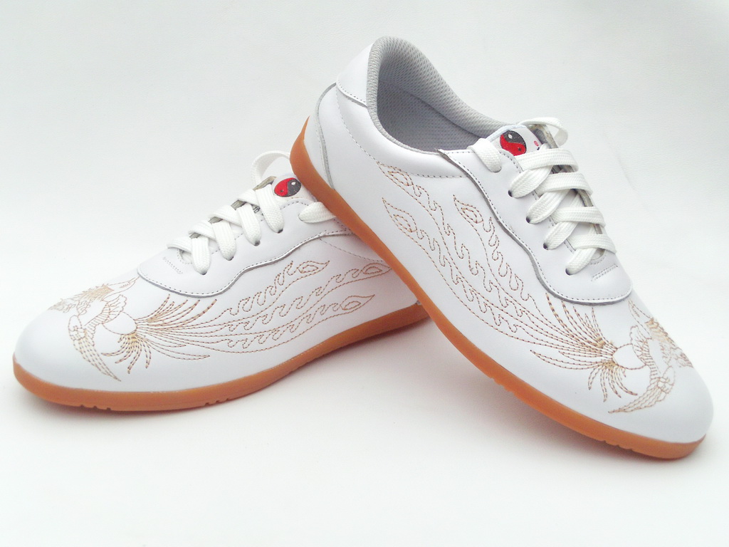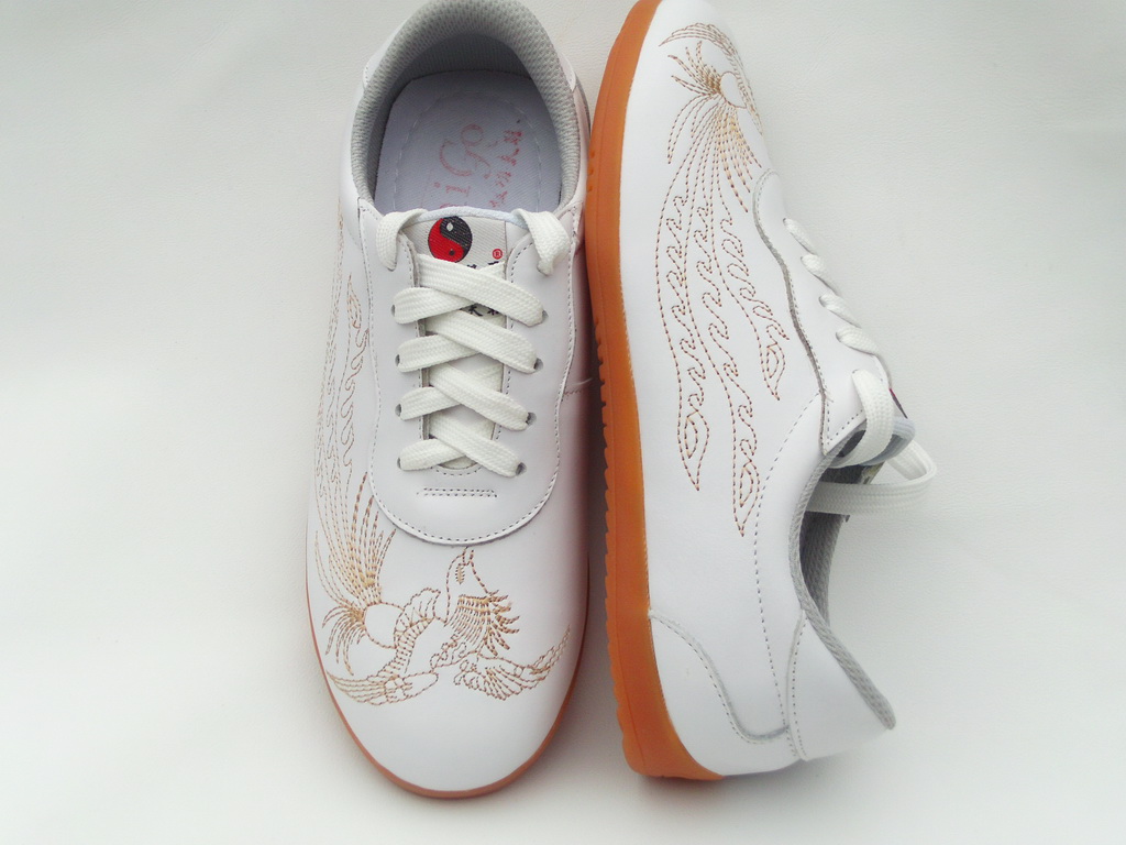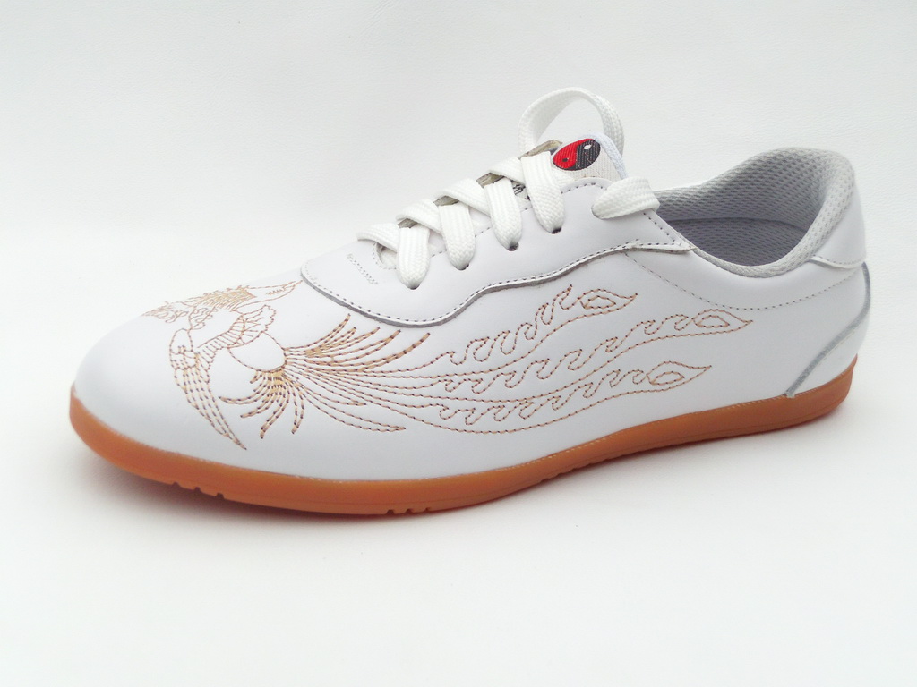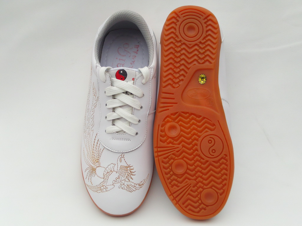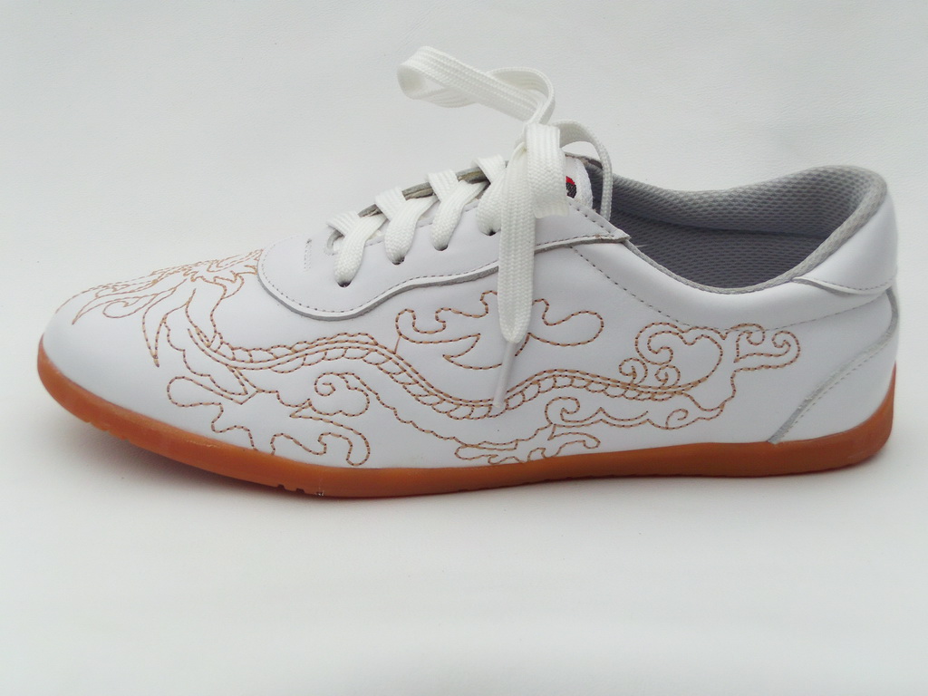 鳳舞九天茉莉白色33喬尚足拜哥太極鞋 龍鳳呈祥之龍行天下 頭層軟牛皮牛筋底武術鞋