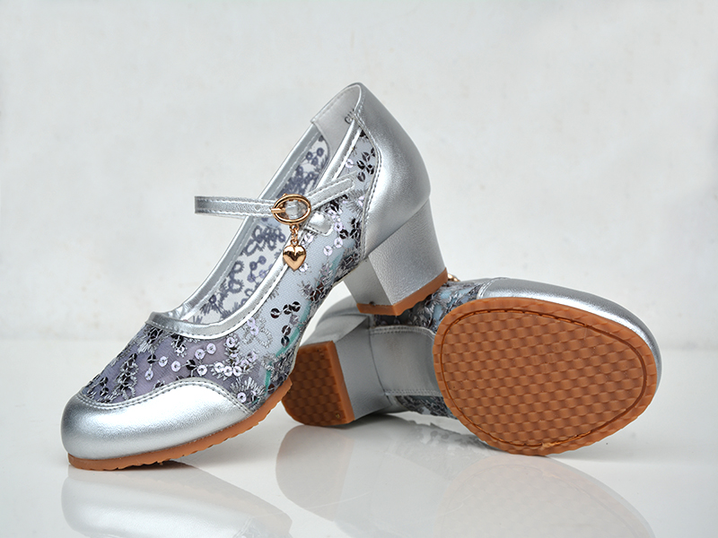 銀色35伯爾儷真皮舞蹈鞋女式春夏新款跳舞鞋透氣網面軟底現代舞廣場舞鞋