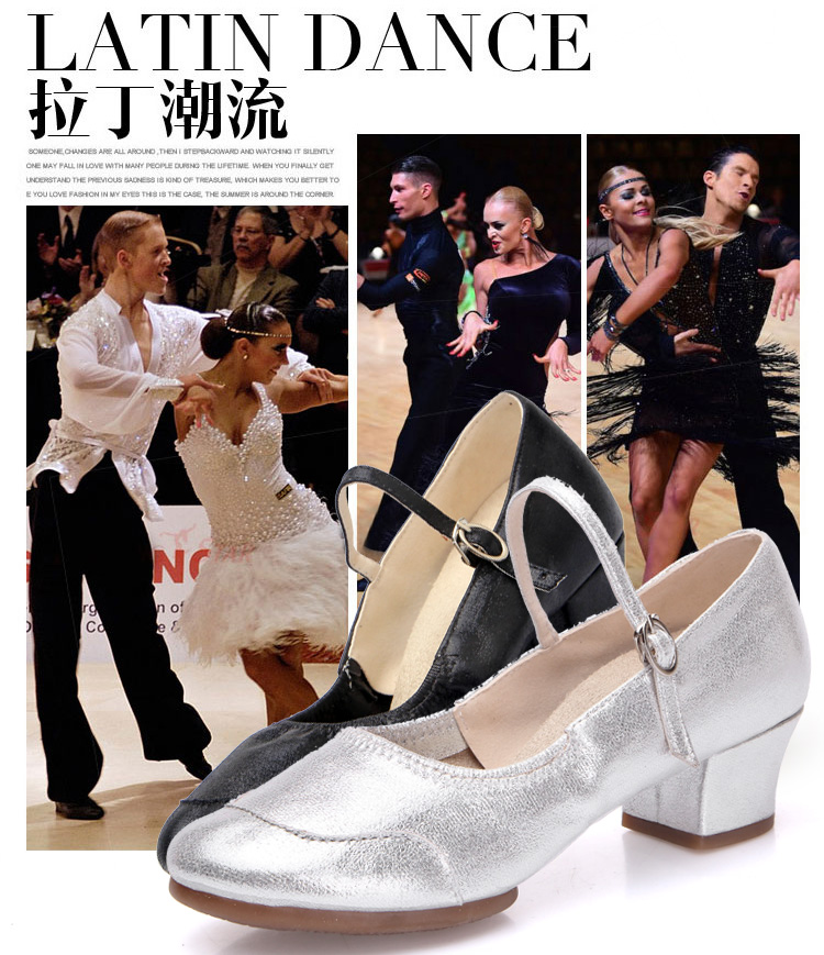 銀色34新款拉丁舞鞋 女成人 交誼舞廣場舞鞋 國標摩登 練功舞蹈鞋 低跟