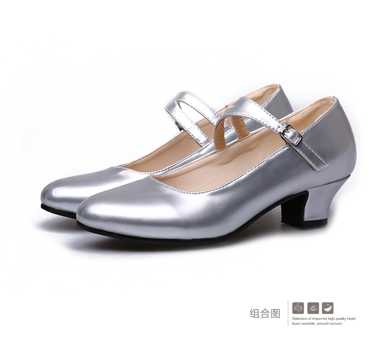 銀色34春夏新款舞蹈鞋橡膠低幫廣場舞蹈鞋媽媽鞋純色拉丁舞鞋女平跟皮鞋