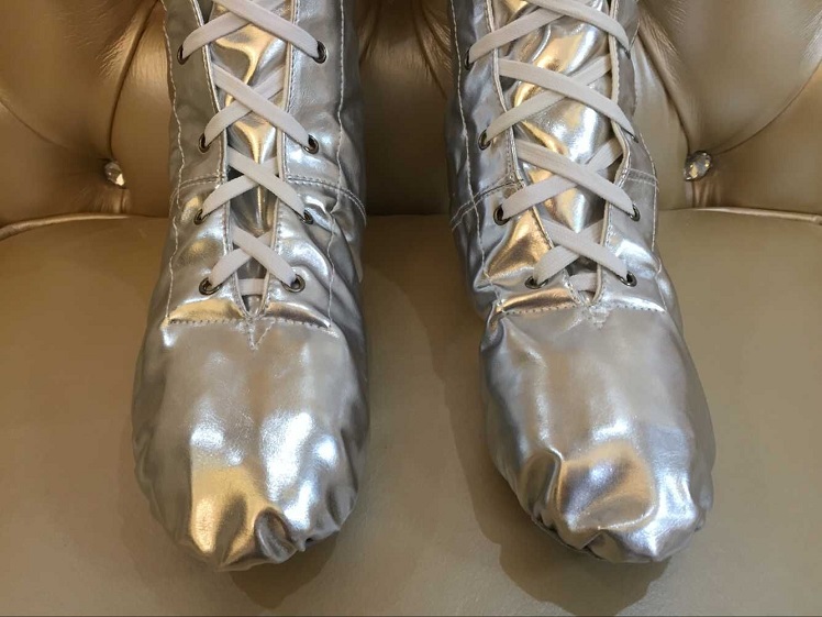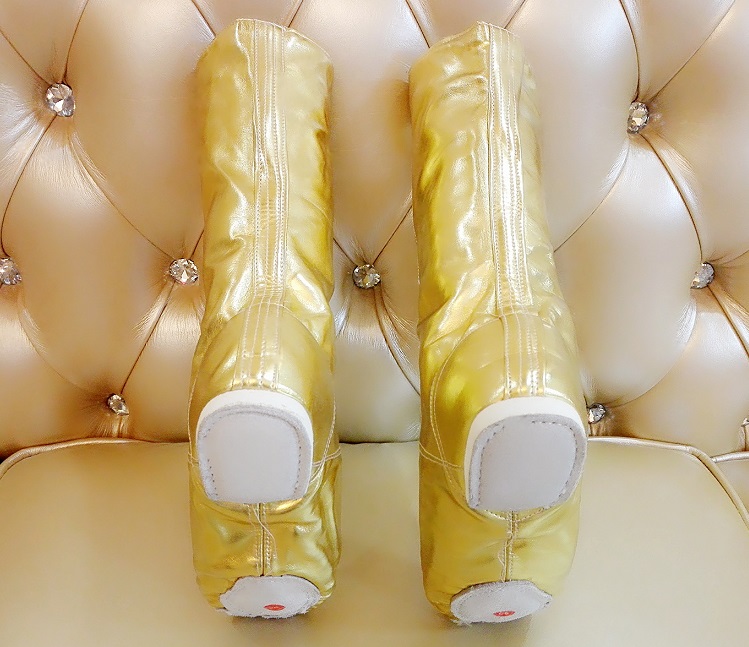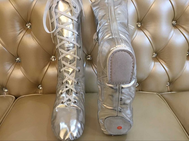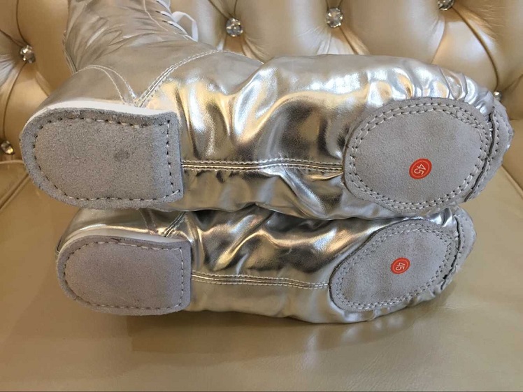 | 本公司大部分商品6一10天到貨。不接急單。急單的客戶請不要下單。感謝諒解與合作! 品名:外貿款高幫舞臺靴 尺碼:28-45碼 顏色:金色 銀色 特點介紹: 1.高筒漆皮亮革舞鞋,設計獨特,顏色亮麗,鞋底采用真皮腳墊,適用于各種舞蹈場合; 2.耐磨,重量輕,透氣性好,穿著舒適,適合大部分年齡段女性舞蹈愛好者。 關于色差: 由于顯示器的不同以及拍攝場景光線明暗程度不同,顏色稍有出入,敬請諒解 注意:此款舞鞋比正常鞋碼小5mm,例如您平常穿36碼的鞋,拍37碼就可以了;如果親幫客戶購買,不清楚鞋碼,請參考下面的尺碼表格,如果您有任何疑問請咨詢本店客服人員。 一:實物效果圖