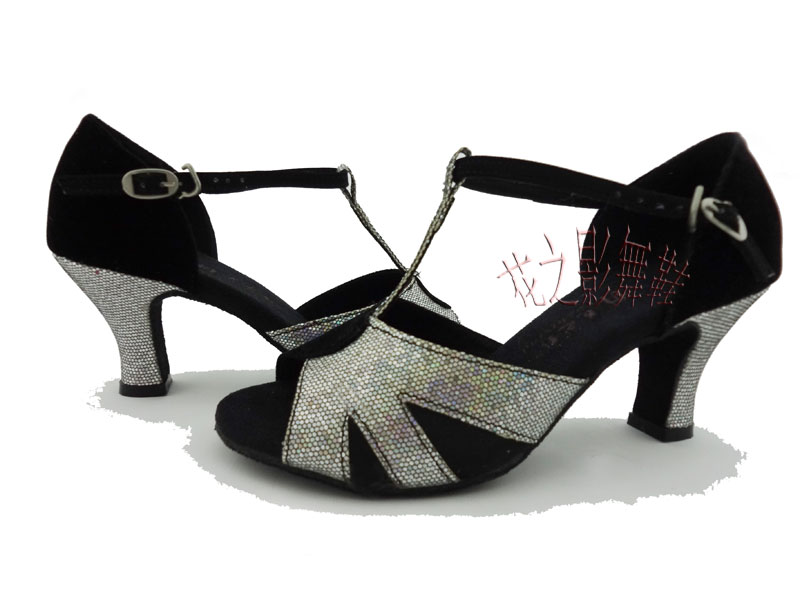 銀白色膠底室外穿33花之影舞鞋廠家現貨正品成人牛巴絨加銀彩點拉丁舞鞋女式舞鞋特價
