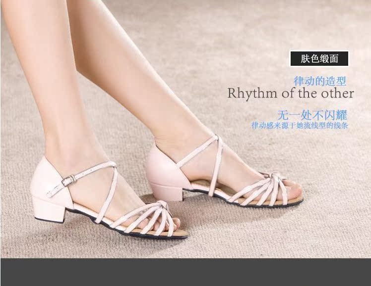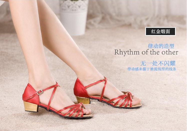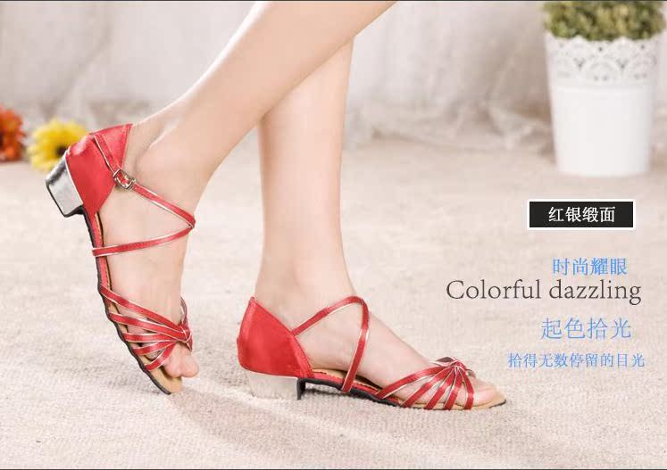 黑紅緞面28兒童拉丁舞鞋 女孩舞蹈鞋少兒國標舞蹈鞋中跟軟底小孩跳舞鞋