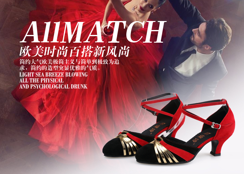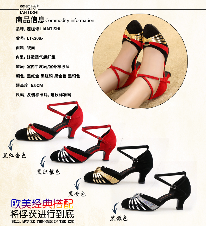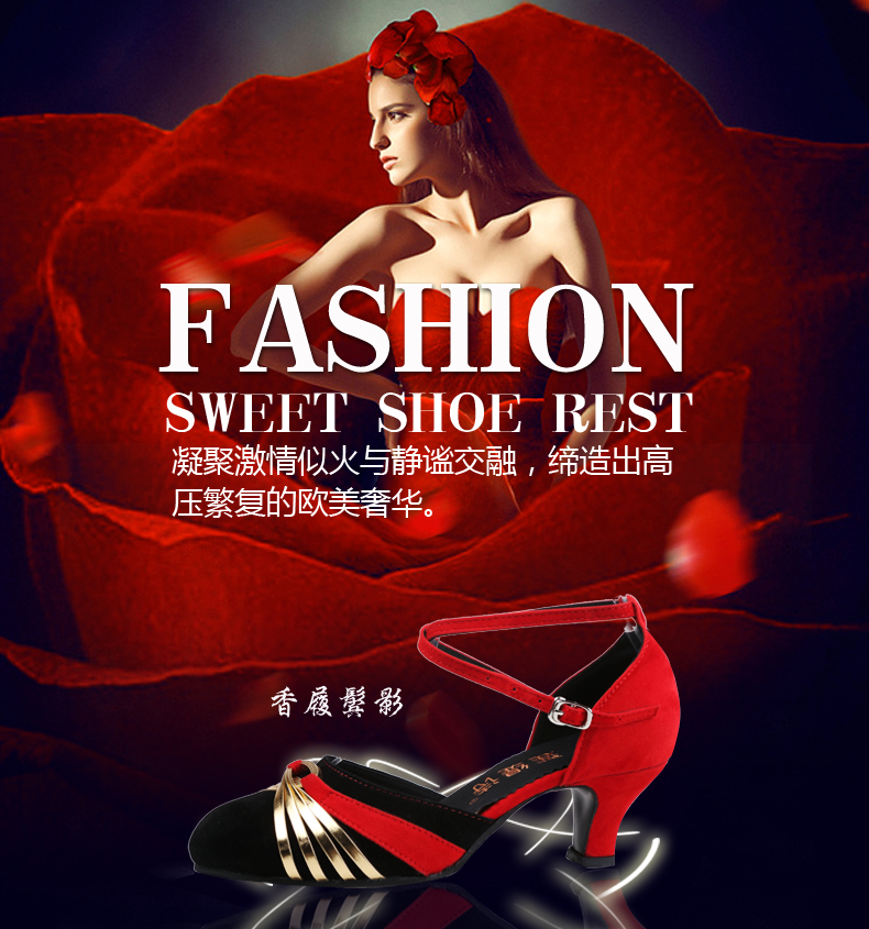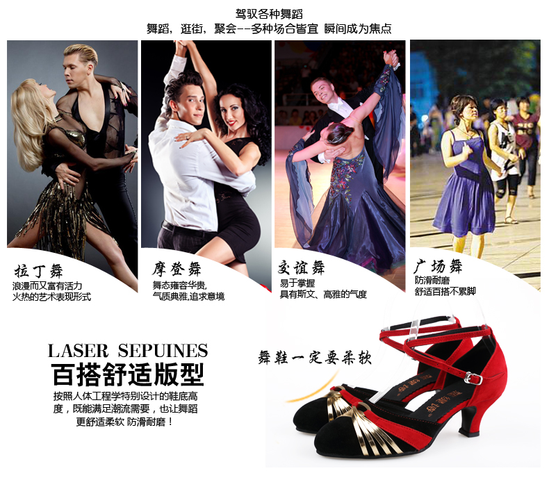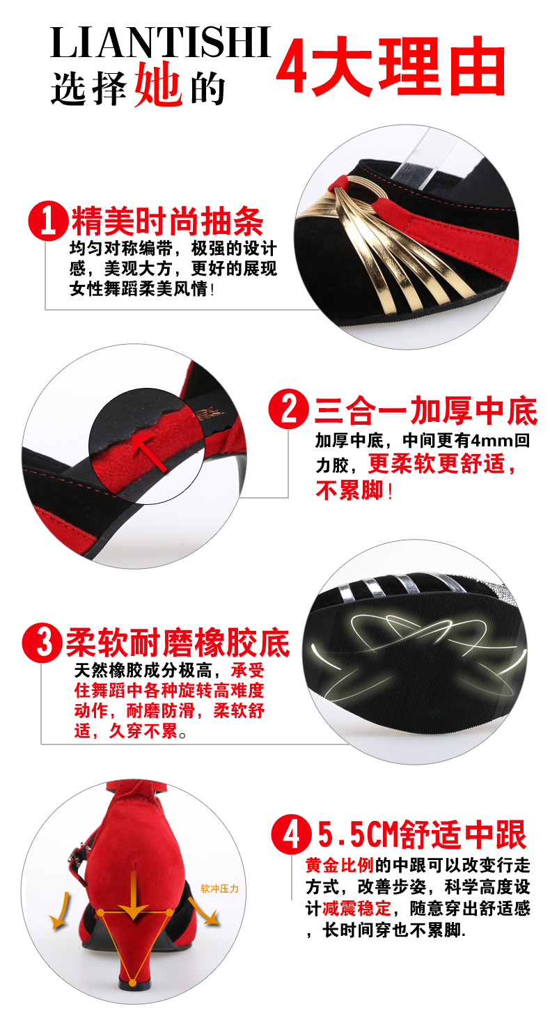黑紅金色室內毛底34拉丁舞鞋 女成人夏季中跟軟底跳舞鞋交誼舞廣場舞蹈鞋中老年絨面
