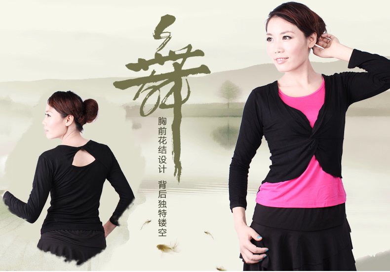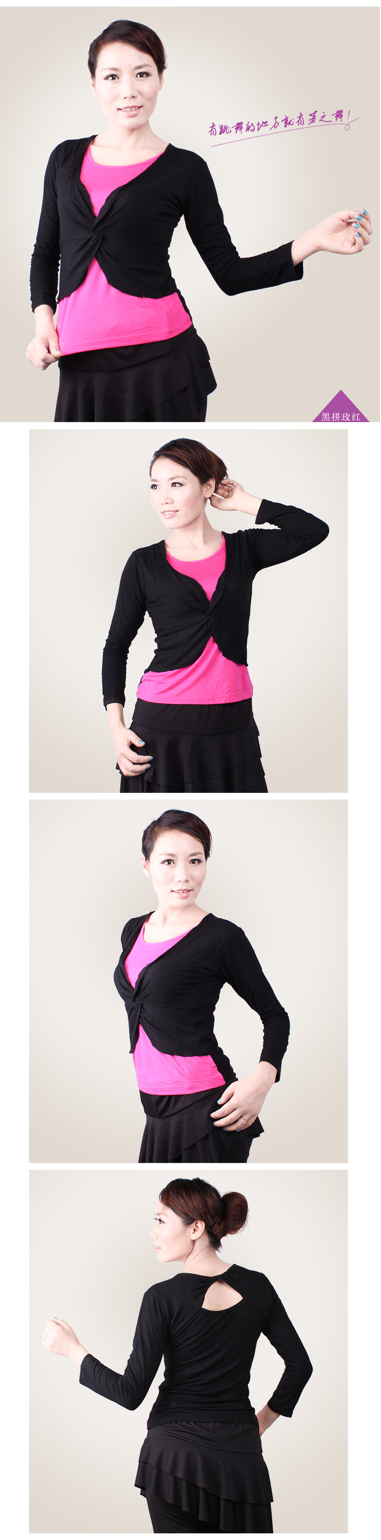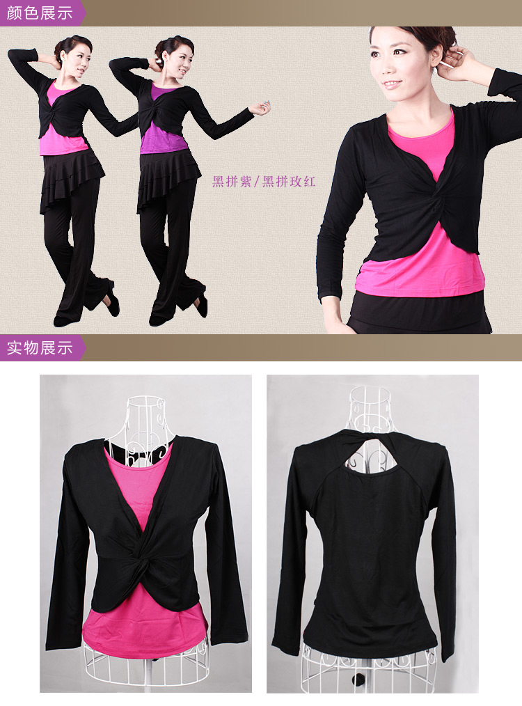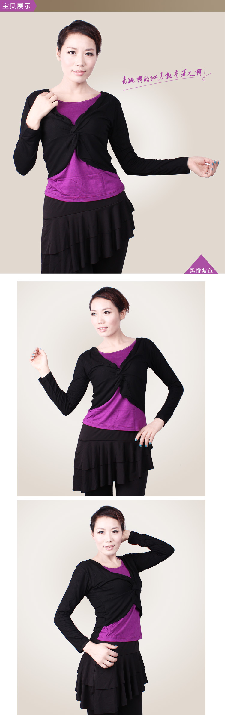 黑拼紫色-LL芳之舞 拉丁舞服裝 舞蹈服裝練功服 廣場舞服裝 假兩件套瑜伽服女