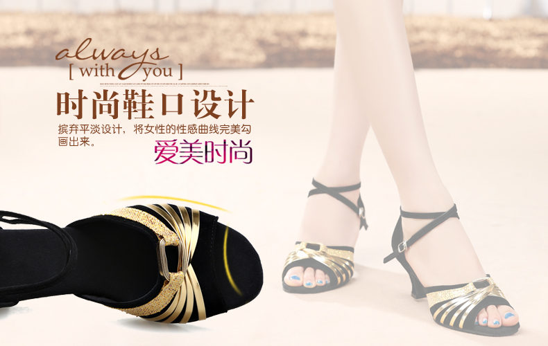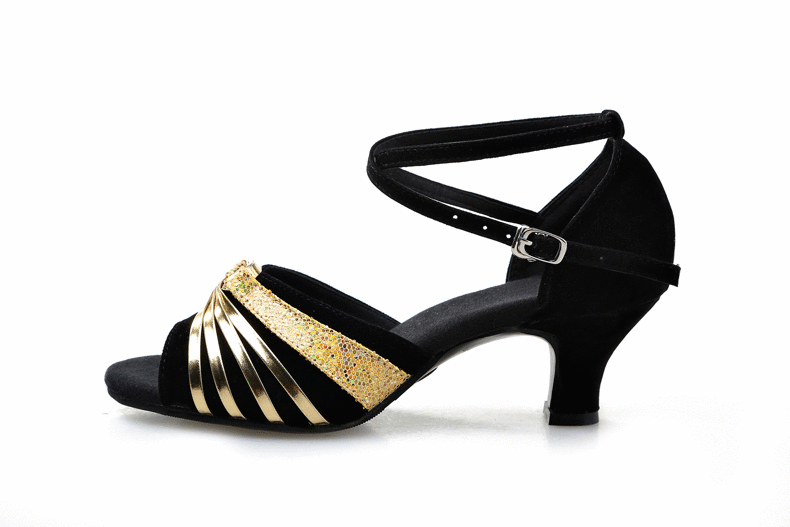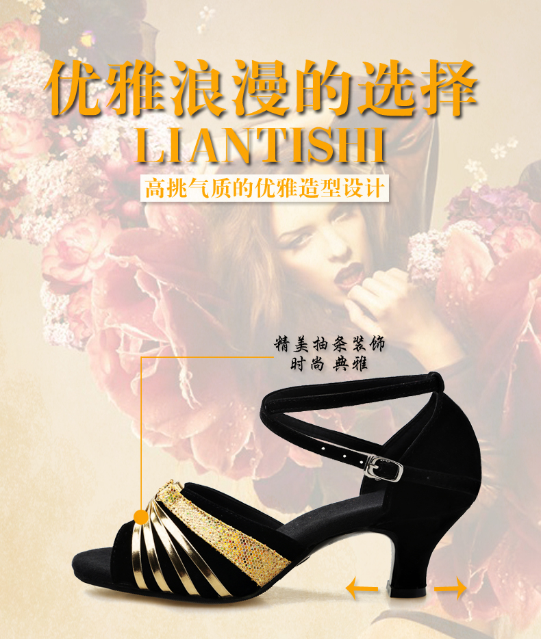 黑金色室內毛底34拉丁舞鞋女夏季 魚嘴女式成人軟底中跟 廣場舞蹈鞋現代跳舞鞋涼鞋