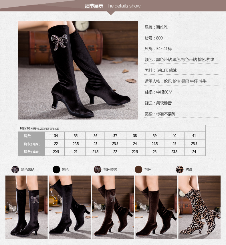 黑色帶鉆室內34百唯雅天鵝絨舞蹈靴拉丁舞鞋秋冬季跳廣場舞鞋長筒舞靴女交誼舞鞋