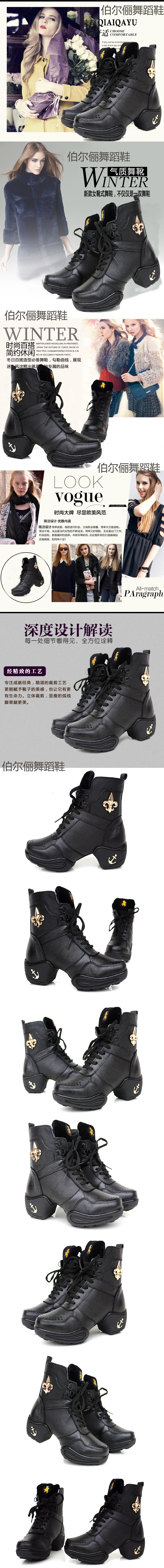 黑色內里加毛款35伯爾儷真皮舞蹈鞋女廣場舞鞋靴現代舞鞋軟底跳舞鞋健身鞋舞靴