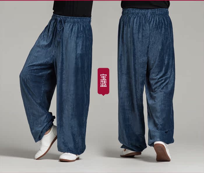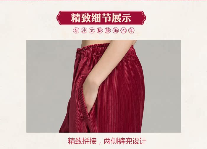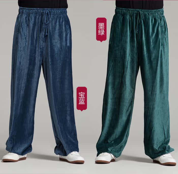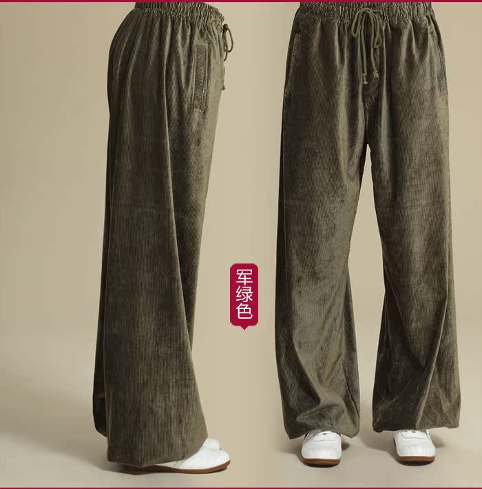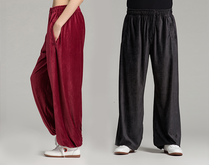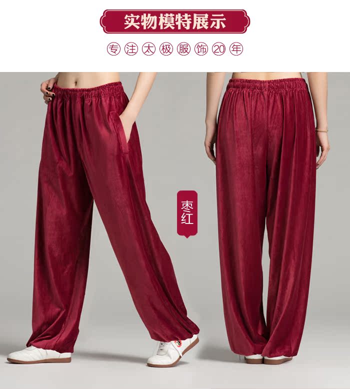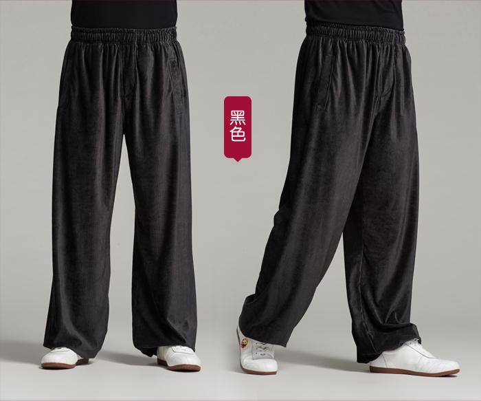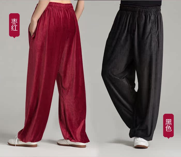黑色XS古韻中華燈芯絨加厚太極褲練功服裝休閑家居瑜伽抽繩運動褲男女