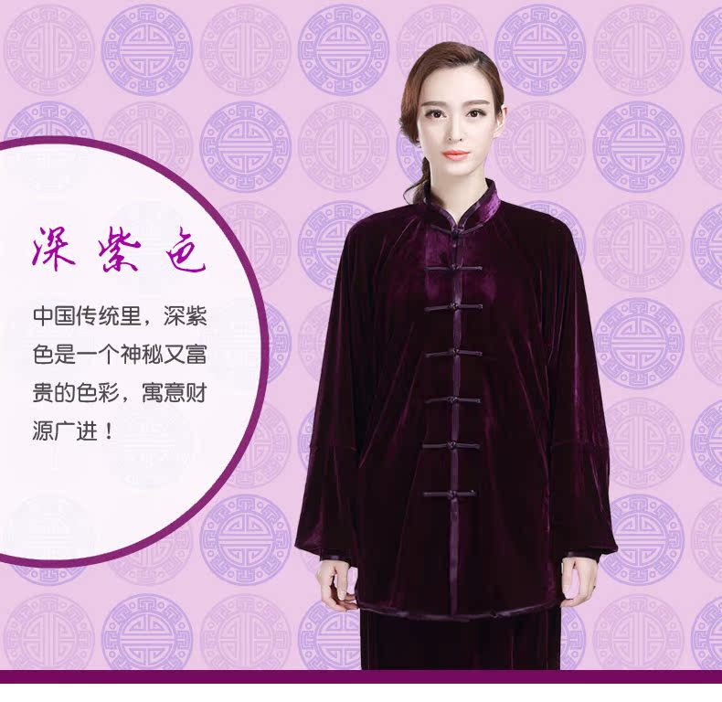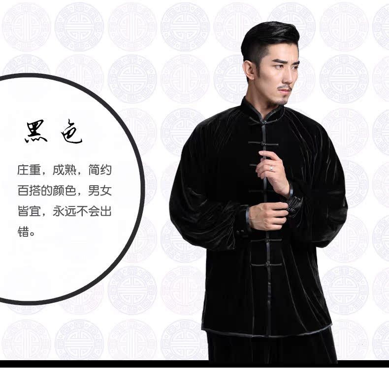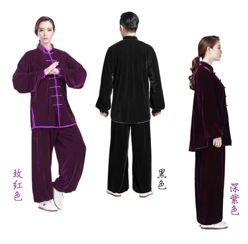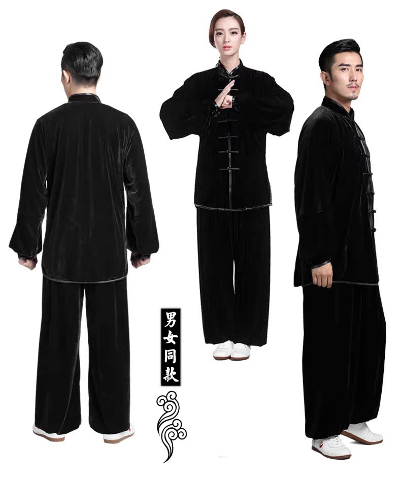 黑色XS古韻中華 秋冬新品重磅金絲絨太極服長袖加厚保暖練功服男女款
