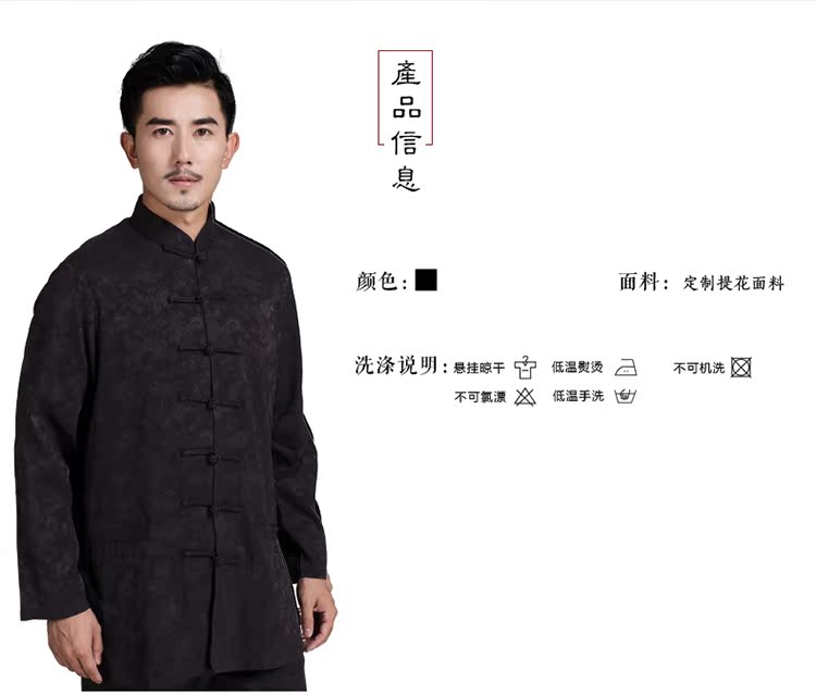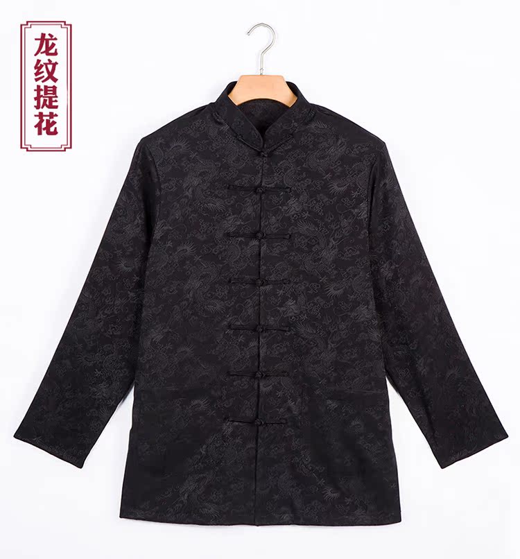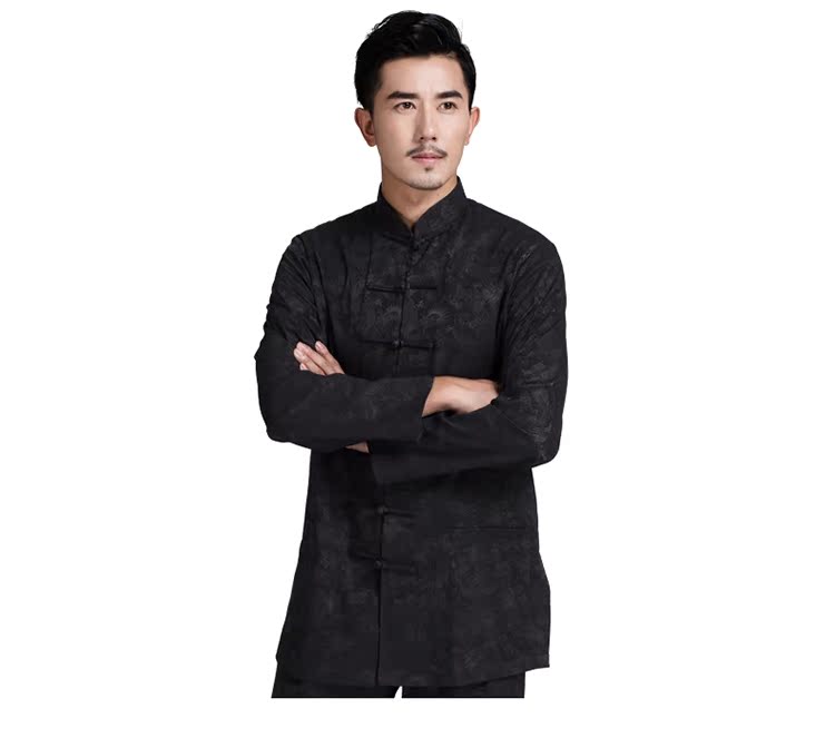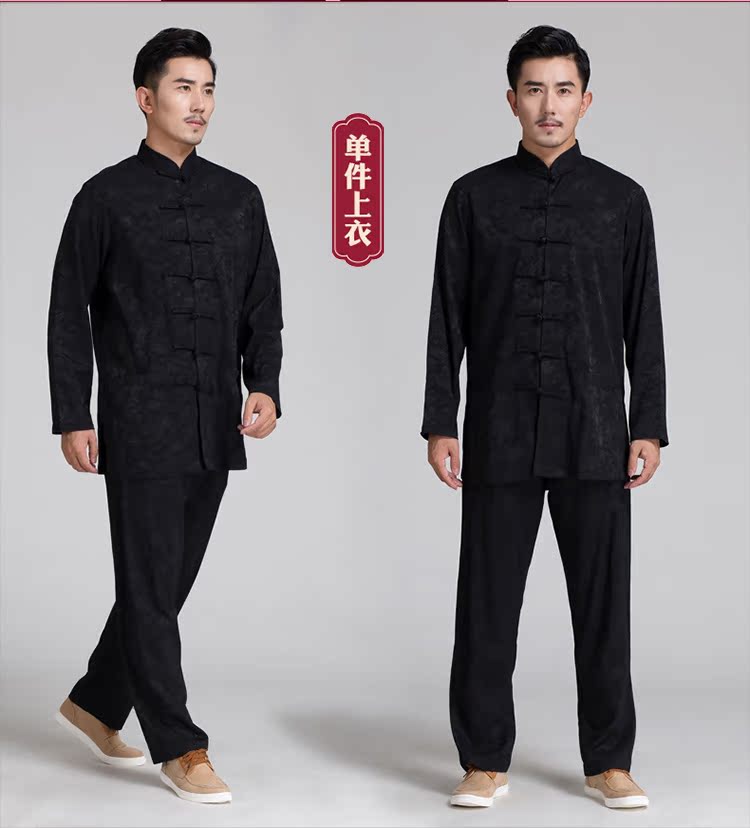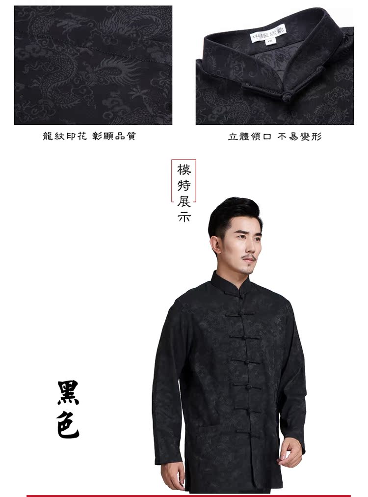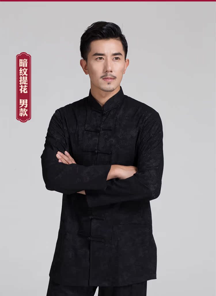 黑色L古韻中華 男士暗紋提花長袖單件上衣太極服晨練服