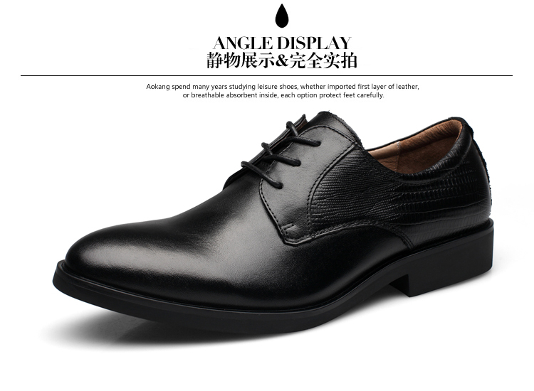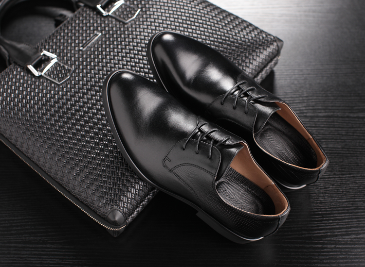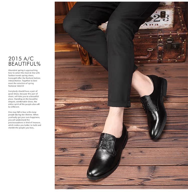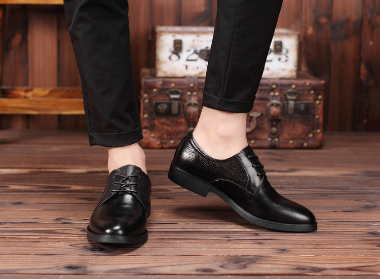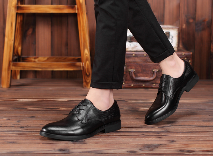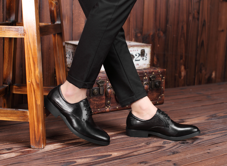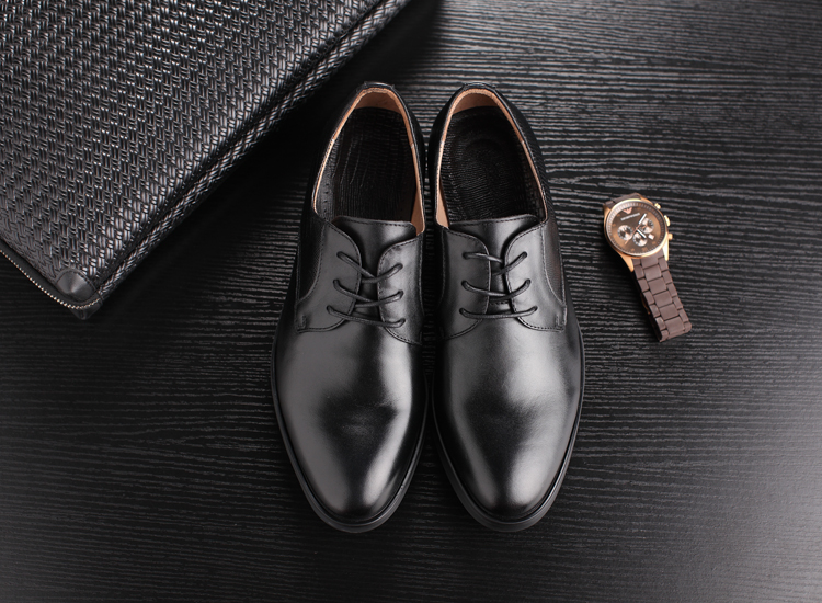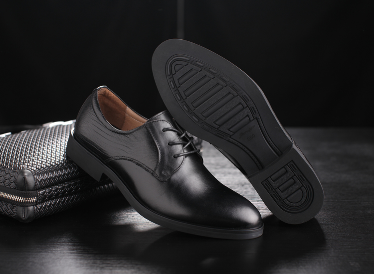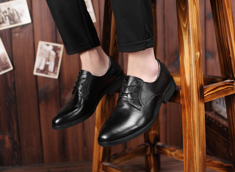 黑色38新款尖頭商務正裝皮鞋男士真皮系帶英倫風男鞋厚底大碼婚鞋子