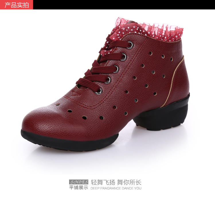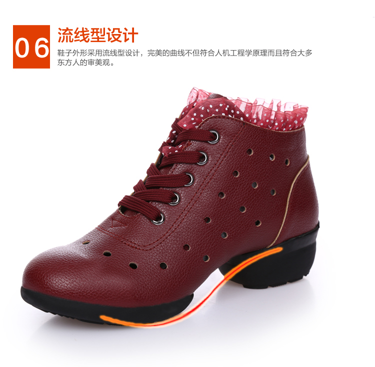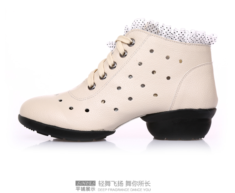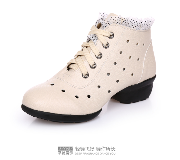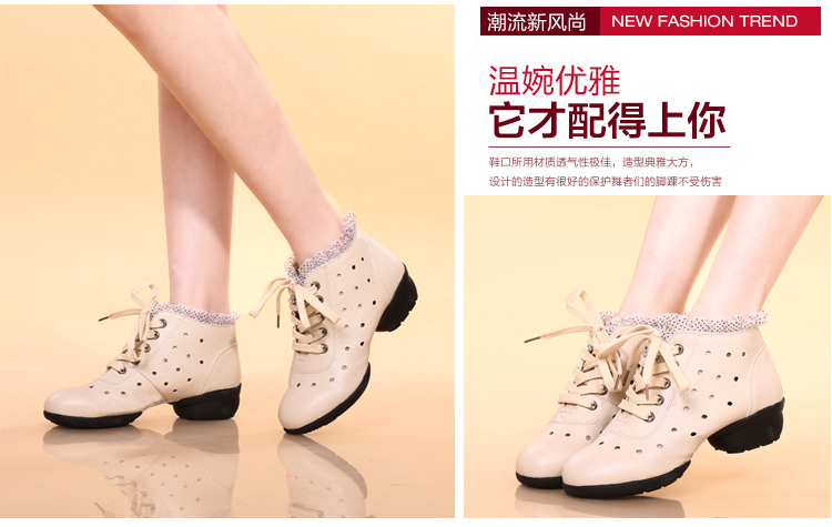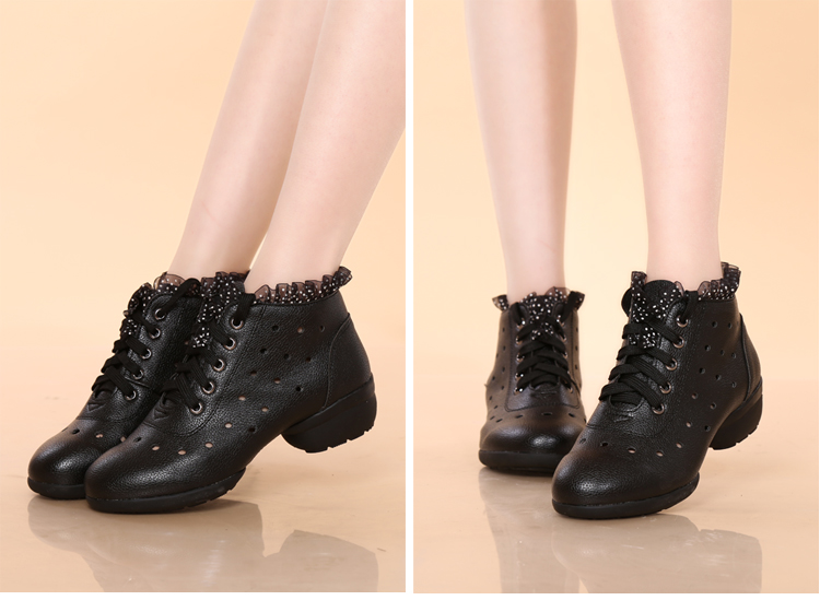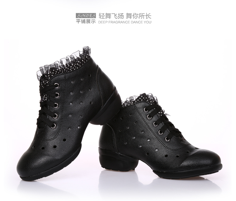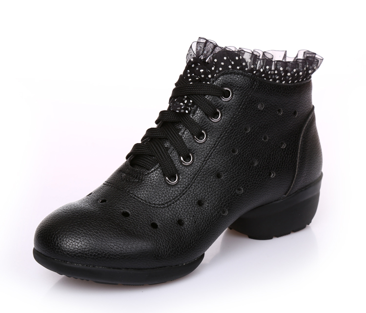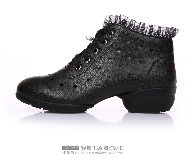 黑色35新款舞蹈鞋春夏真皮透氣舞鞋中幫耐磨廣場舞蹈鞋現代舞鞋網眼女鞋