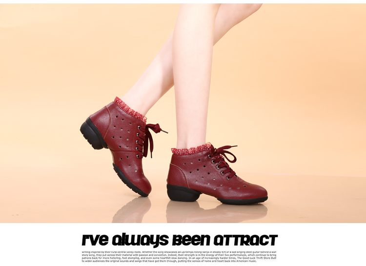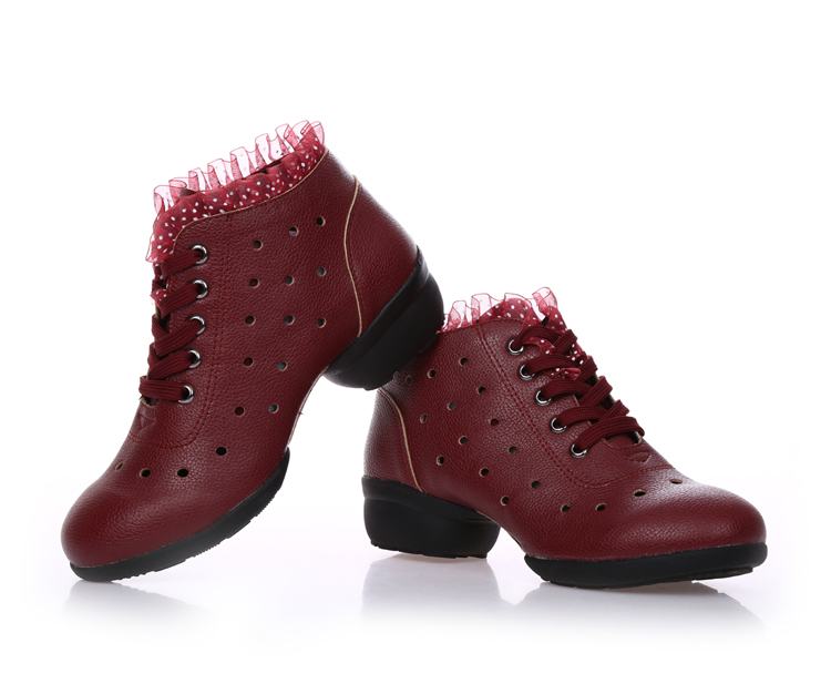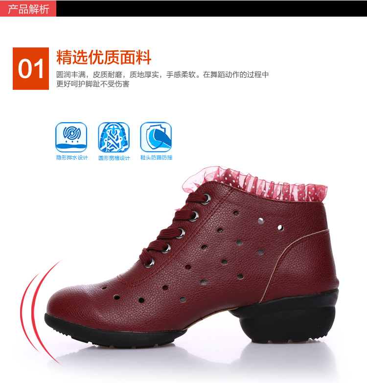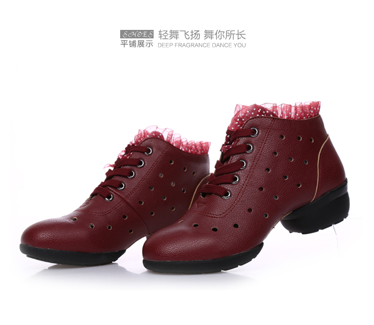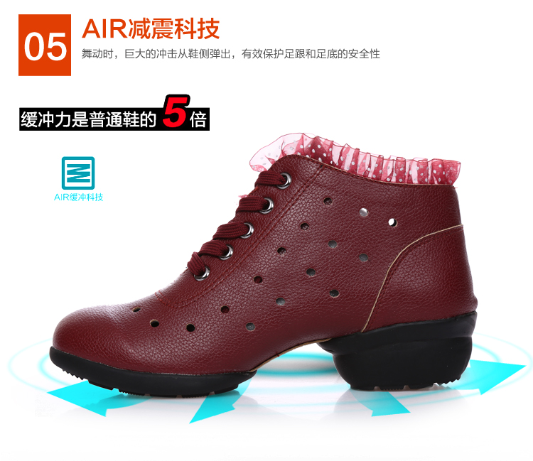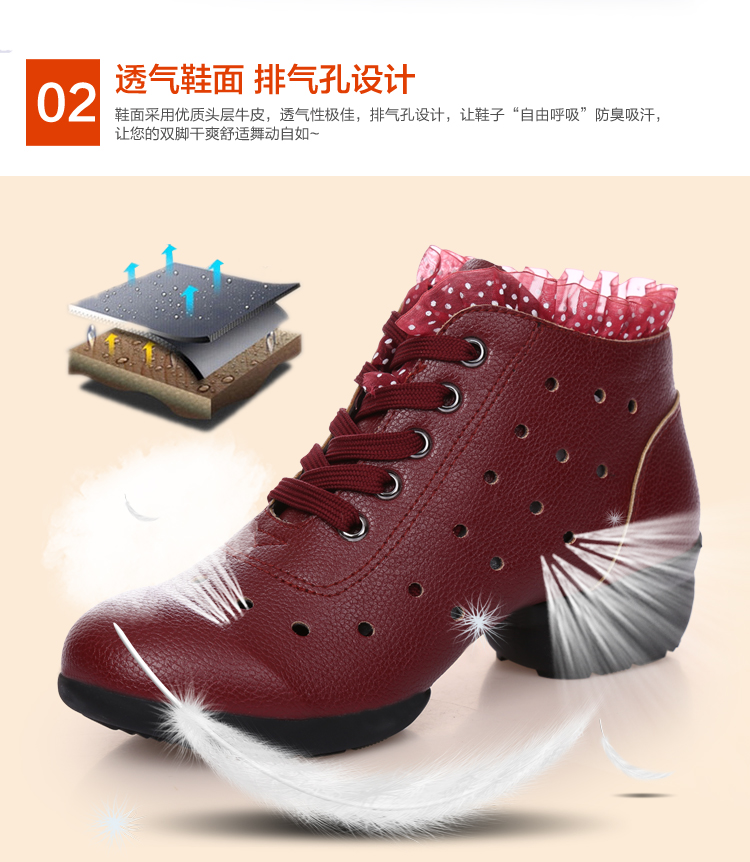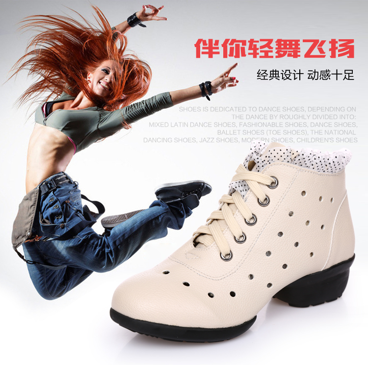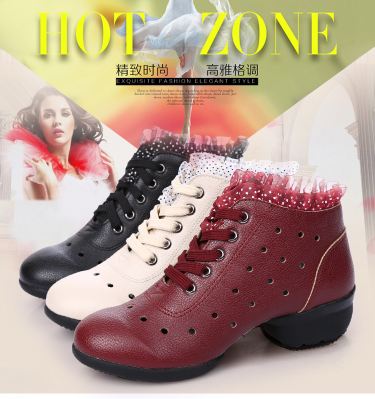 黑色35新款舞蹈鞋春夏真皮透氣舞鞋中幫耐磨廣場舞蹈鞋現代舞鞋網眼女鞋