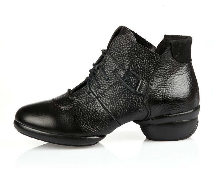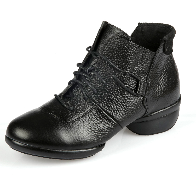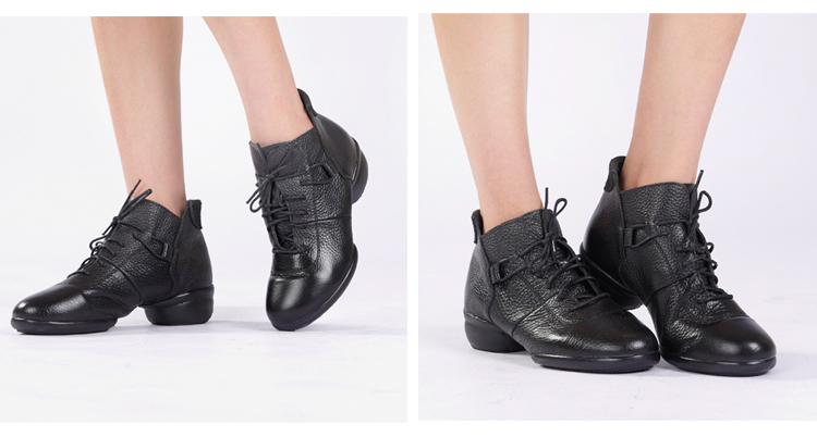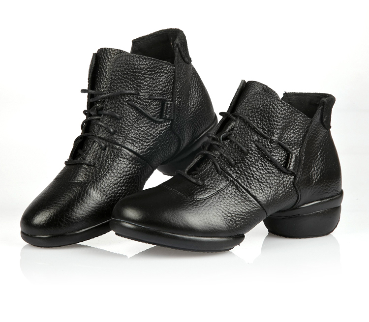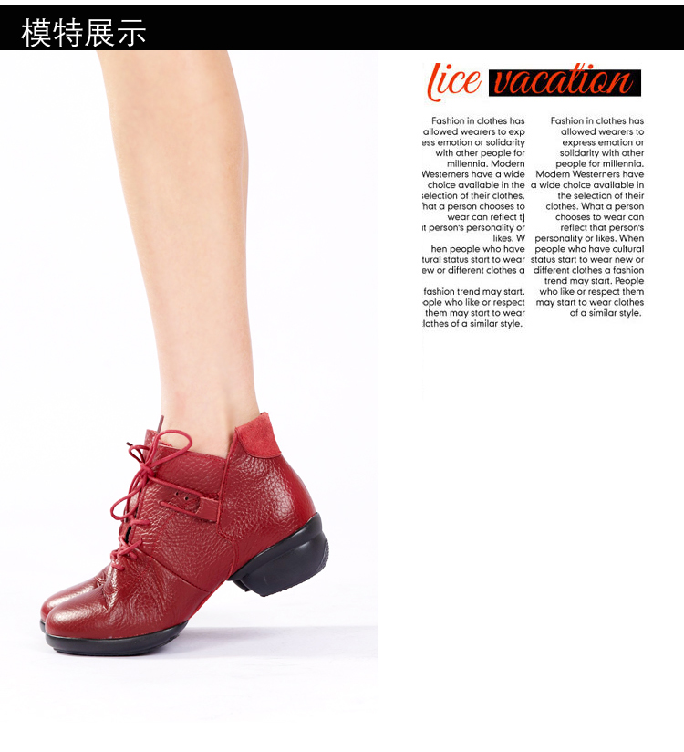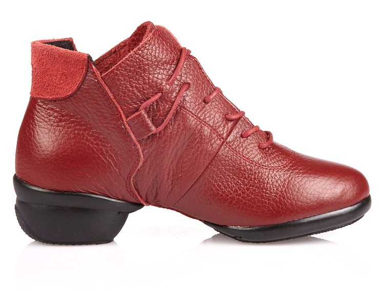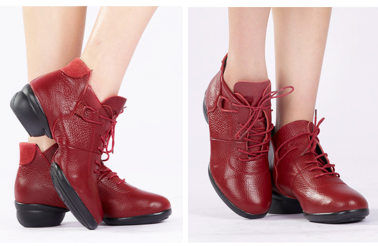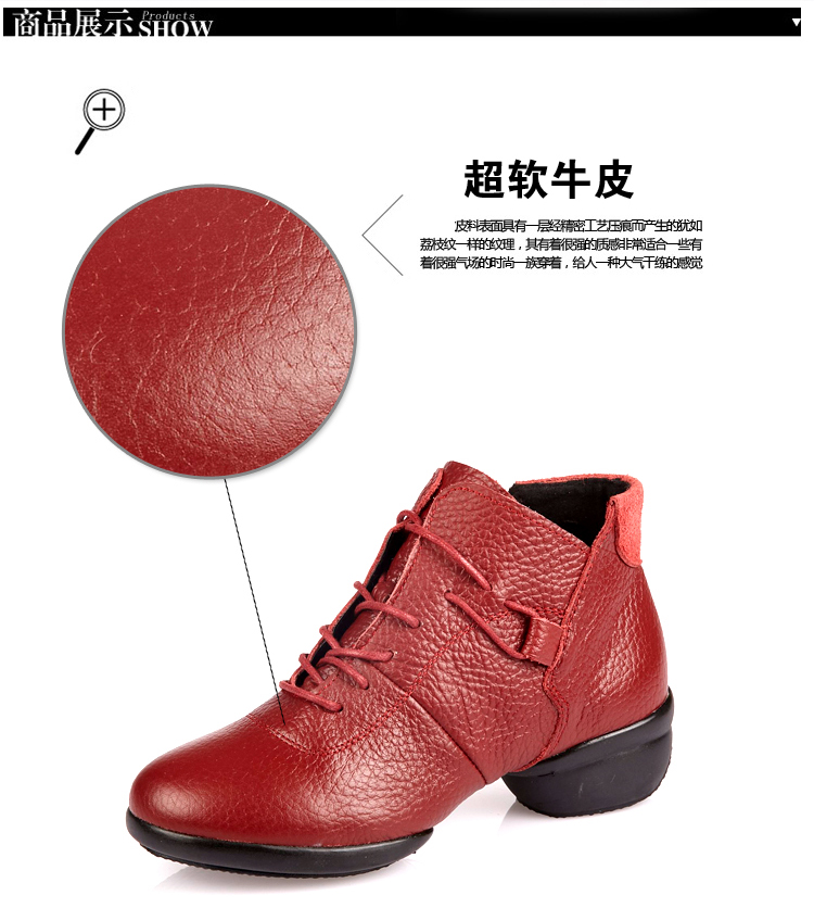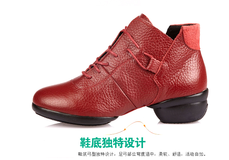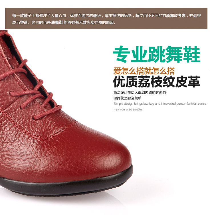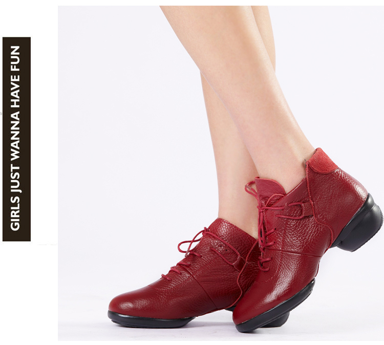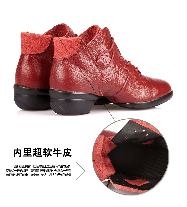 黑色35真牛皮系帶專業軟底舞蹈鞋廣場舞鞋潮女紅色中跟現代舞跳操鞋