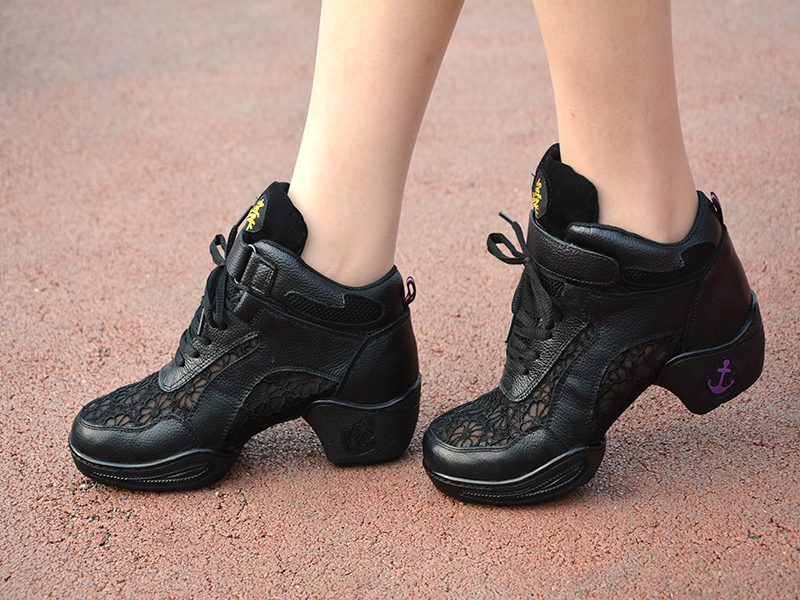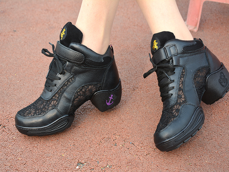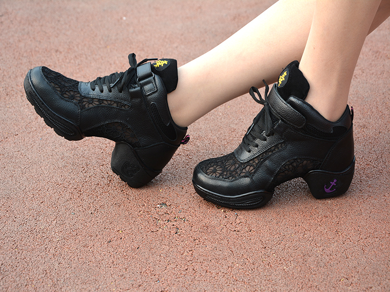 黑色35伯爾儷夏季新款廣場跳舞鞋真皮女軟底增高現代爵士舞蹈鞋女跳舞鞋