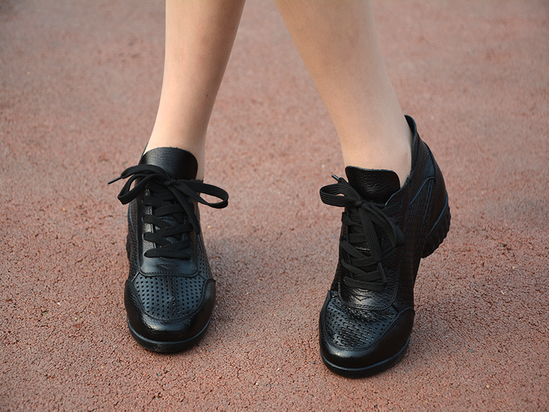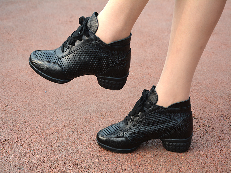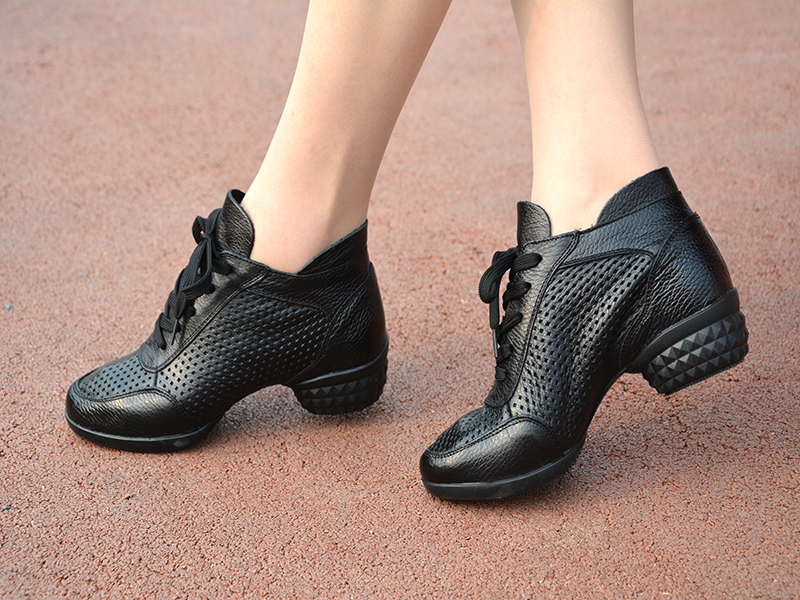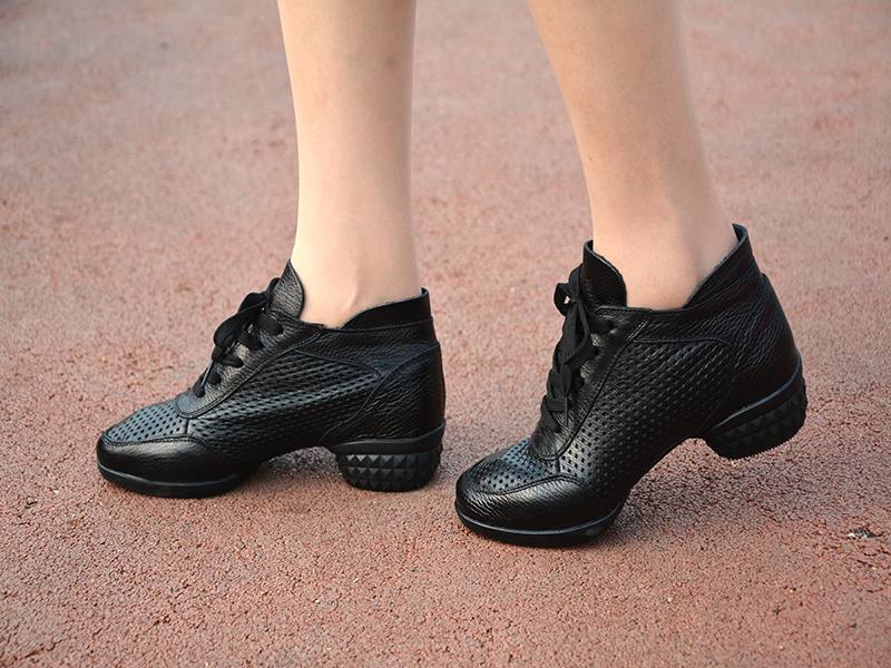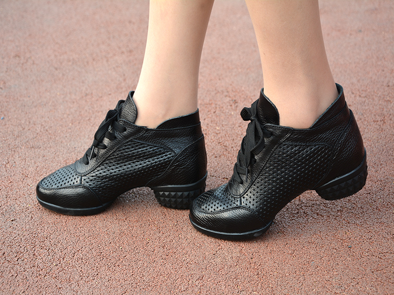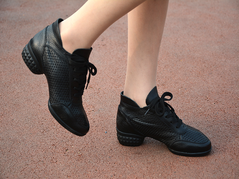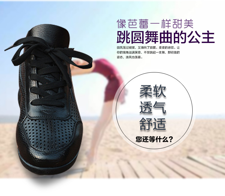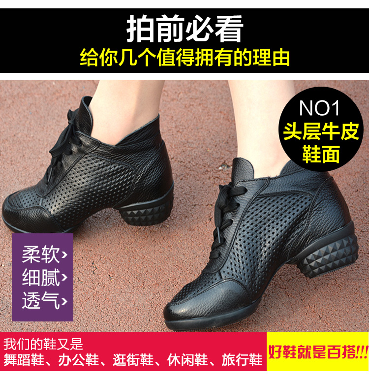 黑色35伯爾儷夏季舞蹈鞋女廣場舞鞋女真皮軟底現代爵士跳舞鞋鏤空女鞋