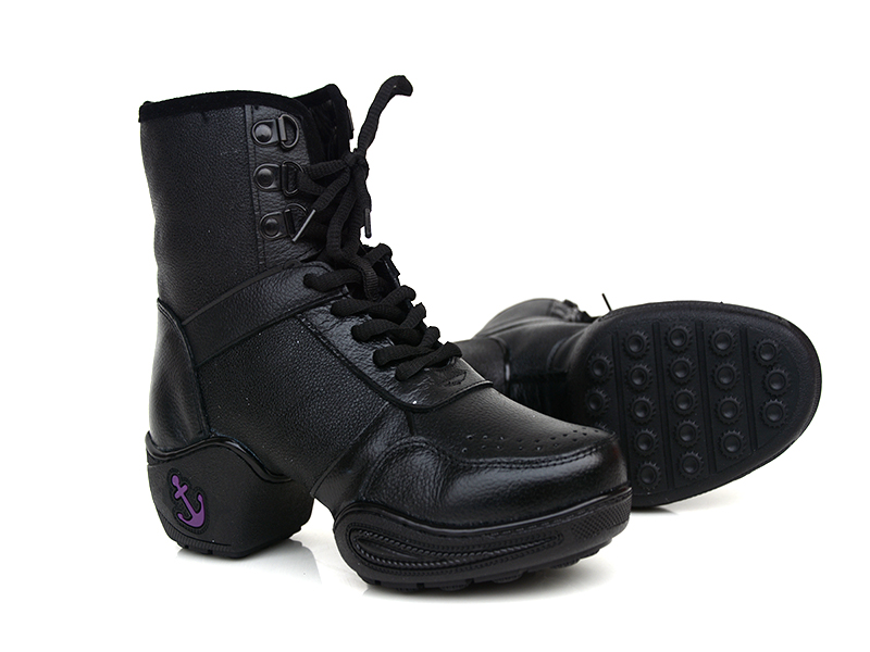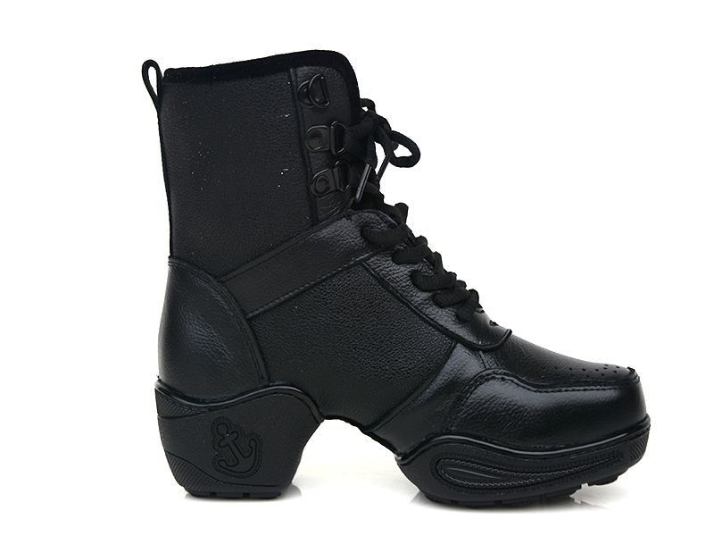黑色35伯爾儷秋冬新款高幫跳舞鞋廣場舞現代舞健美操增高舞蹈靴真皮女