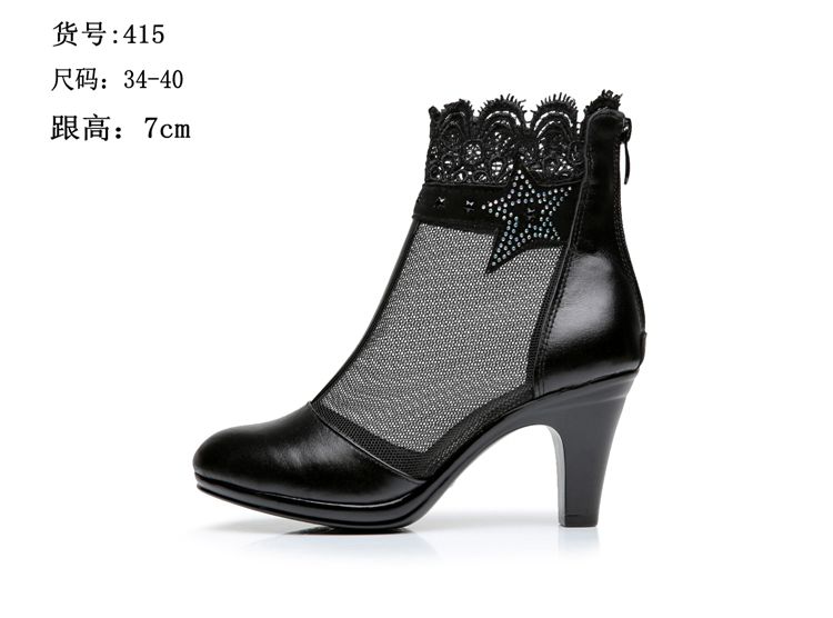 黑色34真皮女春秋靴短靴馬丁靴單靴單鞋中跟鞋女鞋網靴女靴蕾絲春秋網鞋