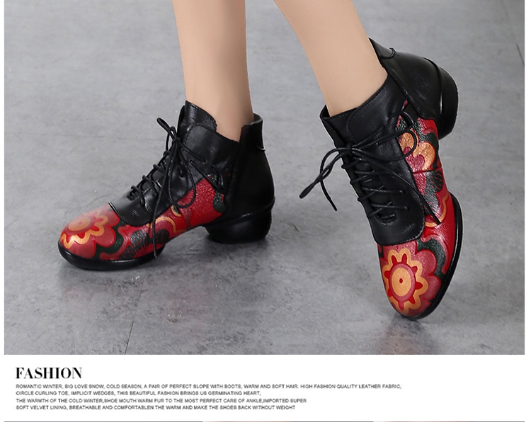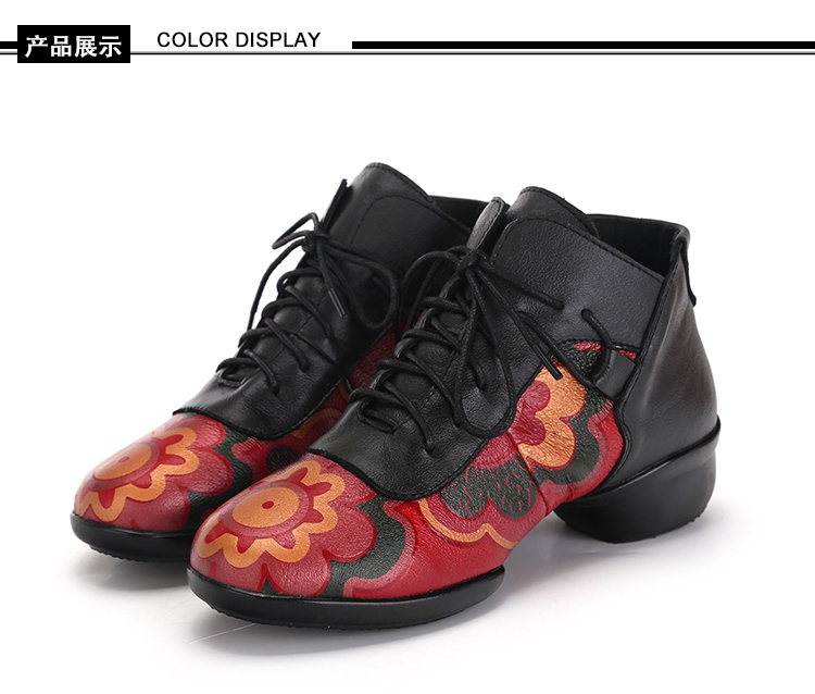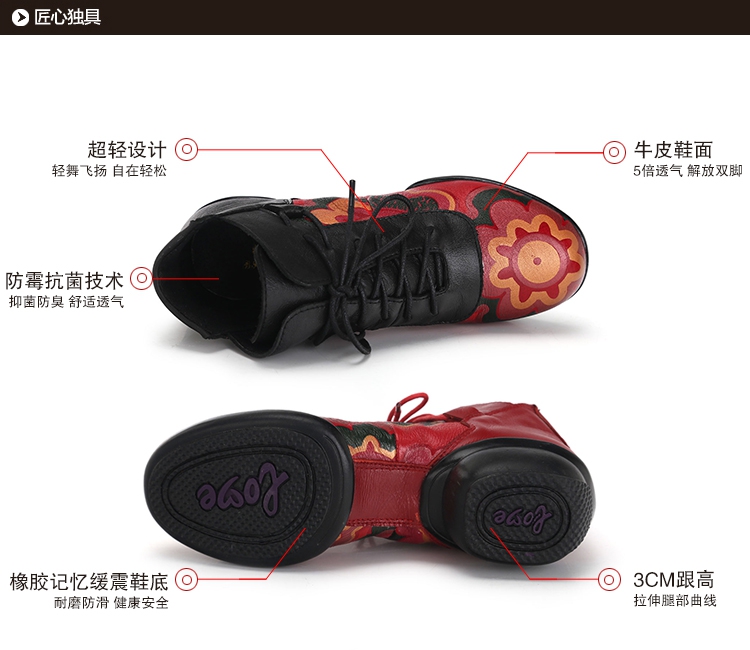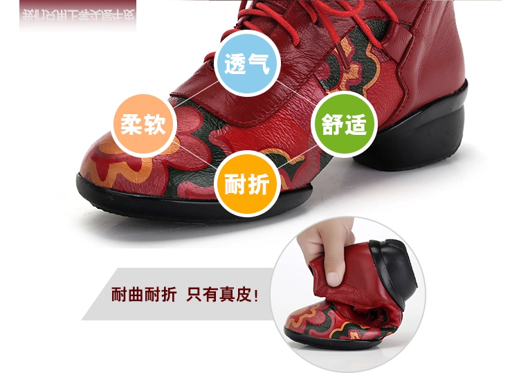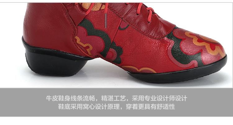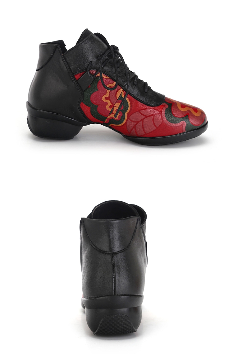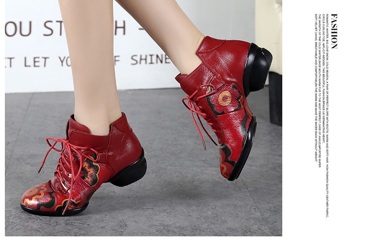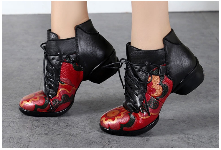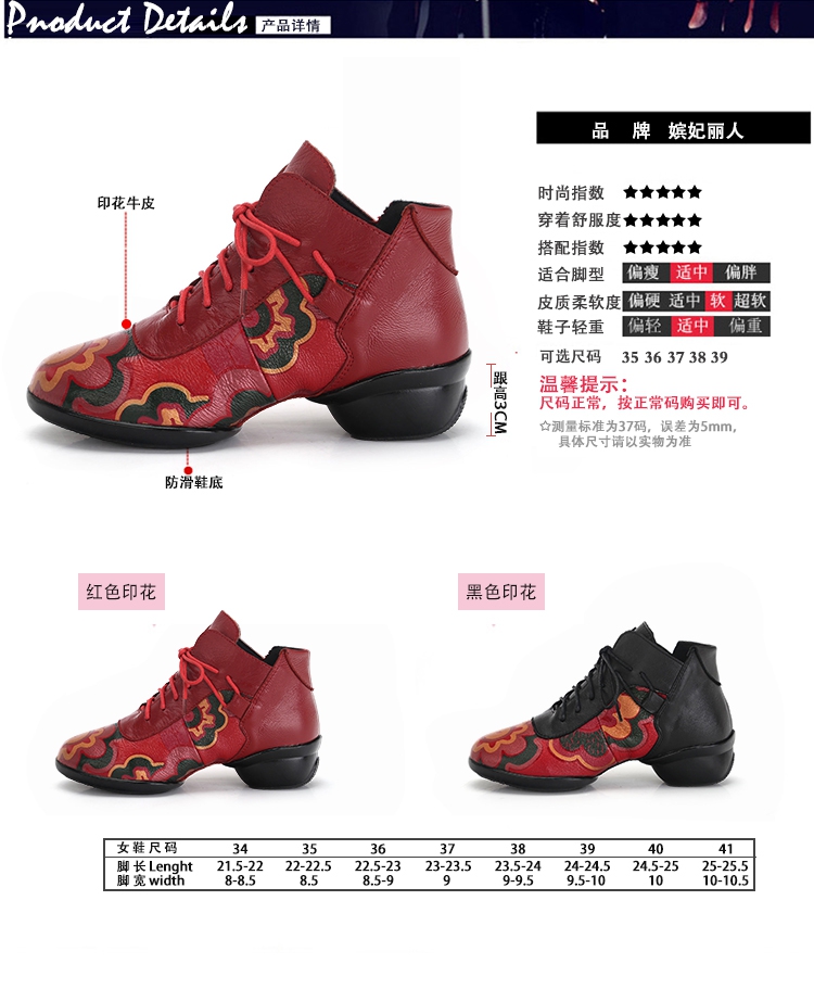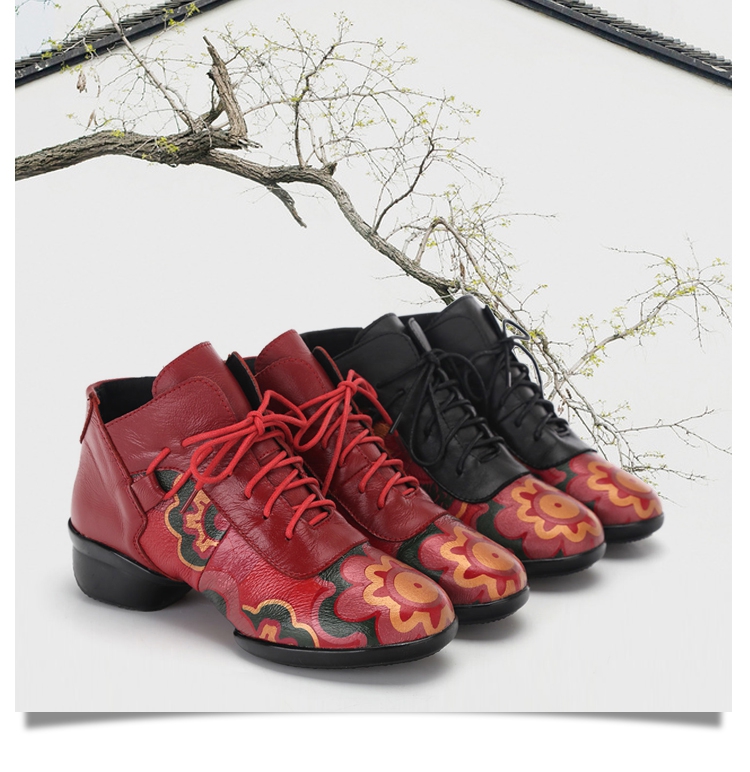 黑色34民族風女鞋舞蹈鞋軟底跳舞鞋印花廣場舞鞋真皮健身操現代爵士舞鞋