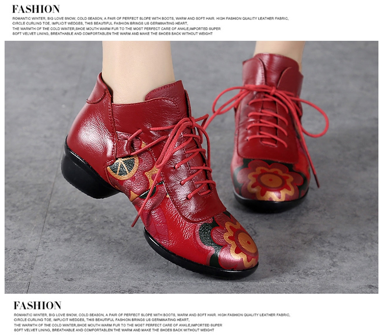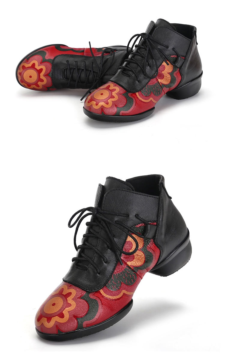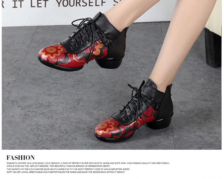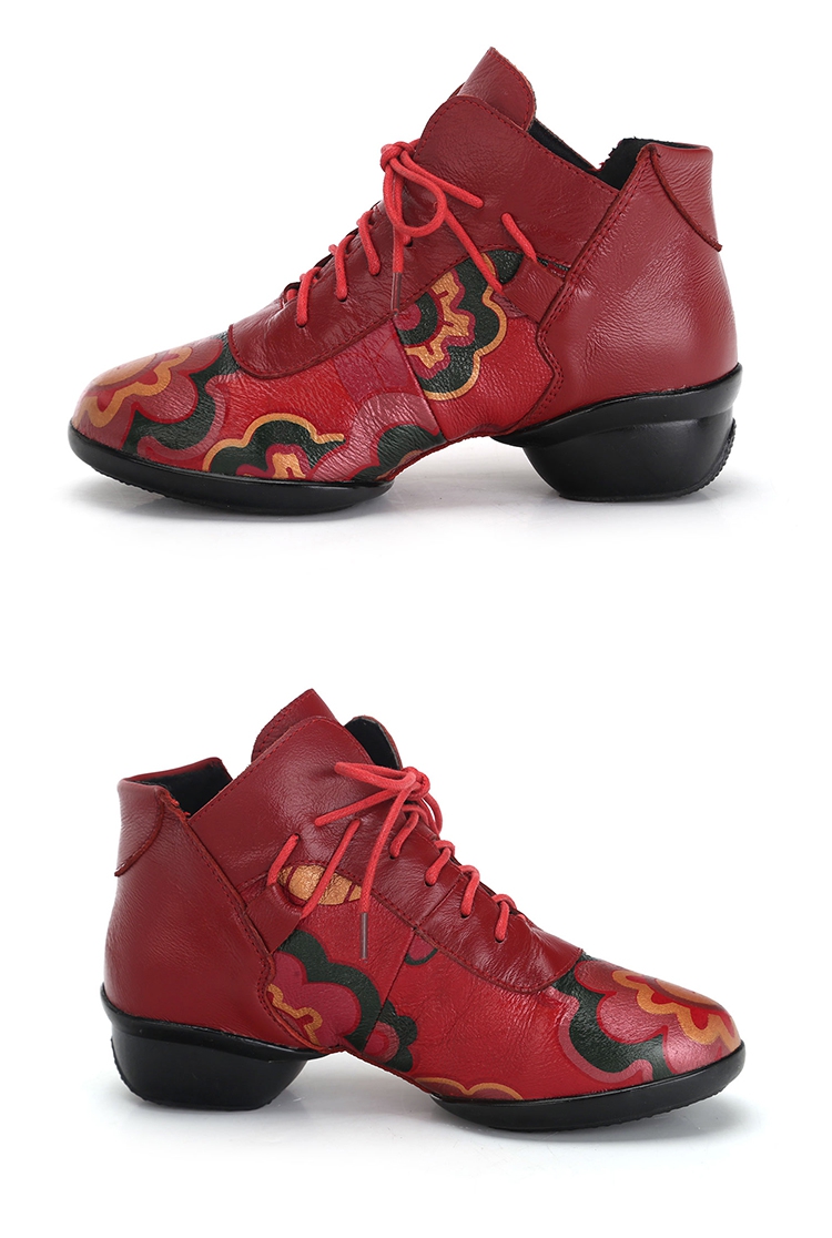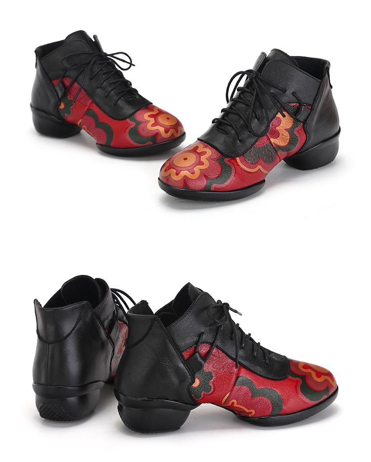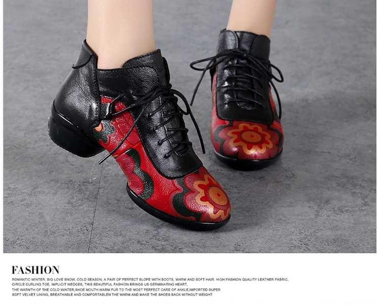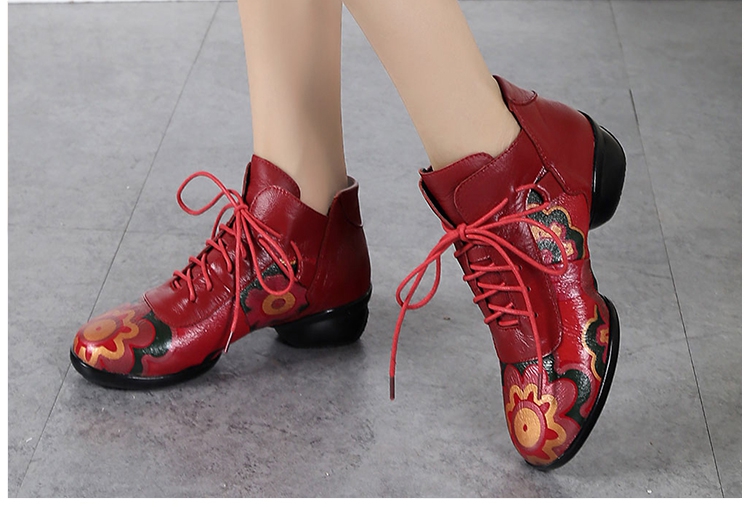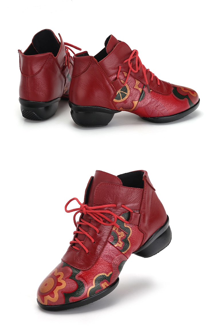 黑色34民族風女鞋舞蹈鞋軟底跳舞鞋印花廣場舞鞋真皮健身操現代爵士舞鞋