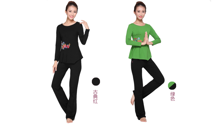 黑色【單上衣】M新款瑜伽服套裝春季加大裙擺莫代爾愈加服正品健身舞蹈服大碼繡花