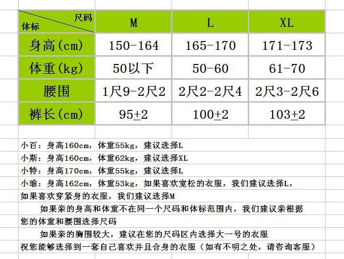 【品 牌】: 百斯特 【編 號】: MK602 【品 名】:高檔莫代爾V字腰多功能褲 【詳 情】:非常實用的一款KK,可以運動、休閑、家居等多用哦。在家,是簡單舒適的家居褲子;出街,搭配簡單的休閑外套外加俏皮鴨舌帽一定是眾人的焦點,渾身散發著青春朝氣;運動,瑜珈或者健身,跳舞等各項運動的時候,也是再合適不過,因為KK面料特別柔軟舒服,厚薄適中而且透氣。 【顏 色】: 黑色 【質 地】:95%粘纖 5%氨綸萊卡不起球 不變形 不掉色 KK彈性很好,適合各種身材的MM,此款褲子大一點小一點都不影響穿著,不挑身材。KK是中腰的,根據個人身材上身的效果可能不一樣,但基本是平肚臍的! 不僅可以在練習瑜珈時穿著,也適應于其它運動項目,這款并且還能在平時穿著休閑的時候穿喔,高跟鞋或者皮鞋涼鞋都可以的,非常的超值也非常的時尚,不論胖瘦的MM穿著效果都非常好。利用率和附加值很高的喔。 【建議尺寸選擇】:加2,為2公分左右誤差