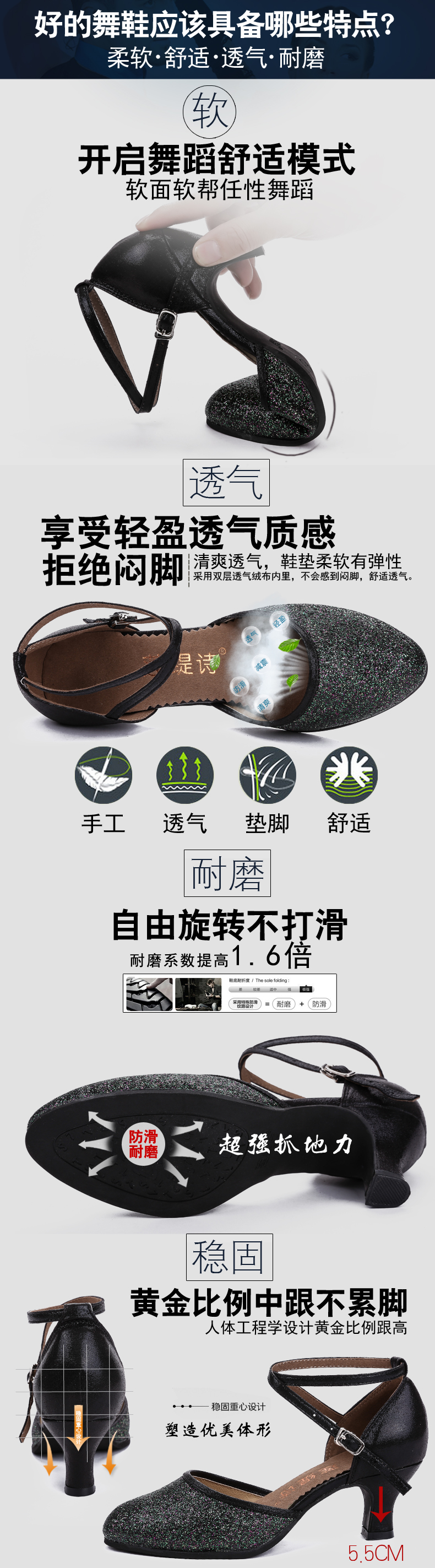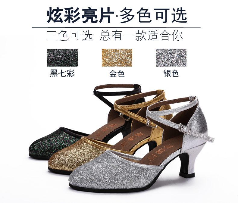 黑七彩室外橡膠底34拉丁舞鞋女成人跳舞鞋軟底交誼舞中跟廣場舞鞋子夏季恰恰舞蹈鞋