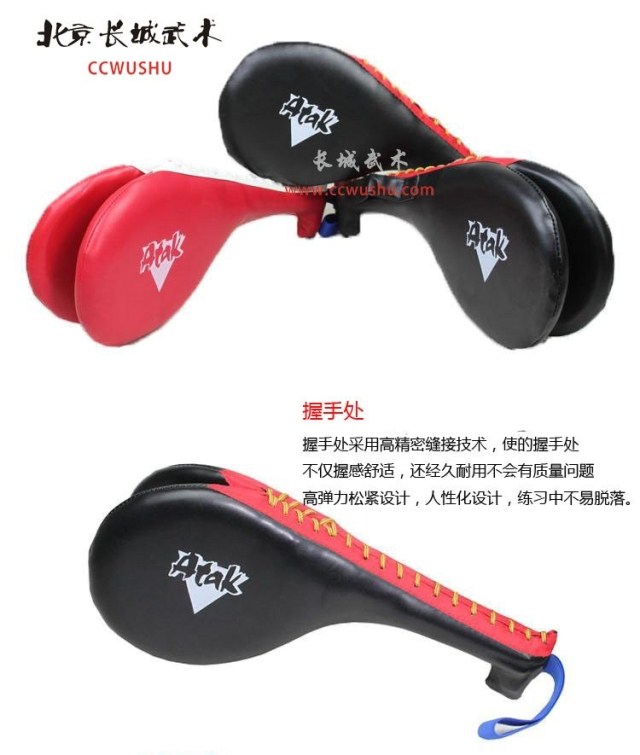 【品名】:跆拳道專業訓練靶 【顏色】:黑色 【材質】:優質仿皮 標價為單個 專門針對跆拳道訓練而精心準備,是道館和個人日常教學練習必備用具,不僅適合跆拳道練習者, 特點: 1.皮面:采用高檔pu高革,細膩光滑、手感超佳。 2.手柄:內襯彈力鋼板條,可彎曲90度不會壞,打破以前的手柄易壞的尷尬。 3.內層:采用發泡膜和1.5cmcm的加厚海棉,有效的保護腳損傷。 4.音質:對于表演、訓練來說,要的就是效果,此款靶子聲音清脆且響亮。 5.顏色:是跆拳道道友最愛的紅色和黑色,色澤鮮亮,可以任意選擇自己想要的顏色。 6.質保:正品保障,在1個月之內手柄處若出現斷裂問題,我們將免費為您更換人為破壞除外 7.選擇理由:對于買家來說,看好的是價格和質量,這款靶子可以說是性價比高的。 大雙葉腳靶,身長44.5厘米,測量方法不同,有些許誤差實屬正常紅色,PU,適用于跆拳道訓練,道館訓練,量大從優,歡迎選購! |