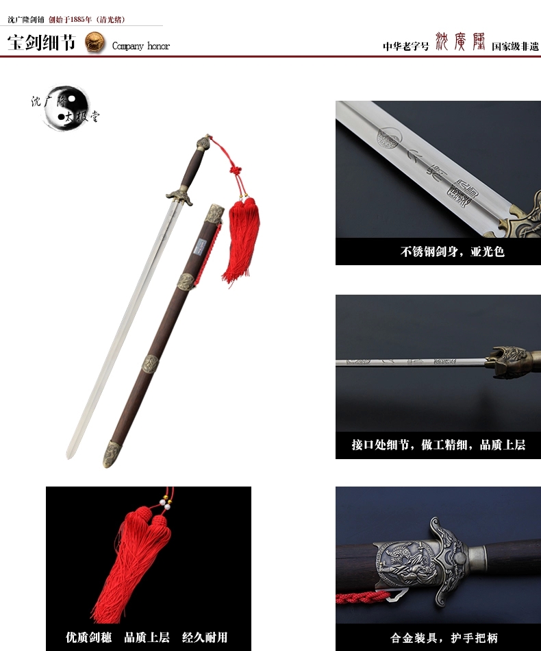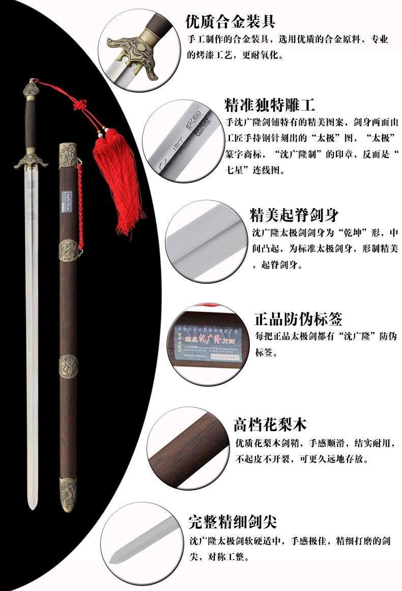 重要提示:此款太極劍鞘我們采用天然梨木,梨木顏色有很多,我們無法確定給您發的太極劍劍鞘顏色和圖片是一致的,我們只能保證給您配置的劍鞘為梨木;以實物為準,介意的親慎拍哦!!