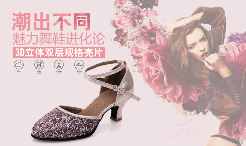 香檳粉室外(橡膠底)34拉丁舞鞋女式成人中跟軟底國標摩登舞蹈鞋廣場跳舞鞋子夏季涼鞋