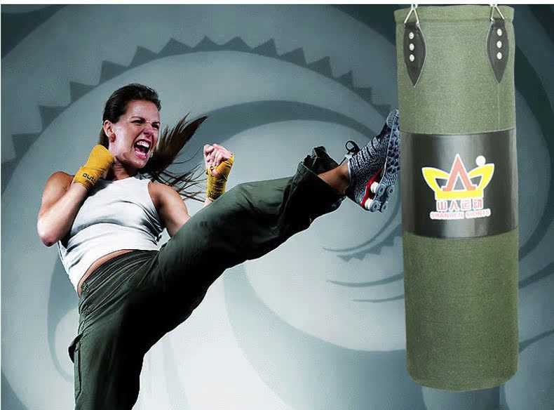 軍綠色半實心1米沙袋山人運動 掛式半實心拳擊沙袋 加厚帆布散打訓練沙包 家用健身