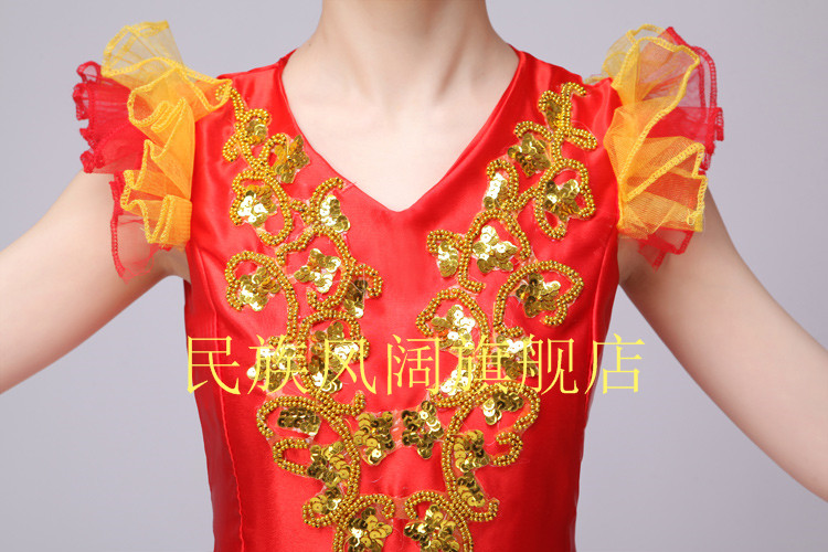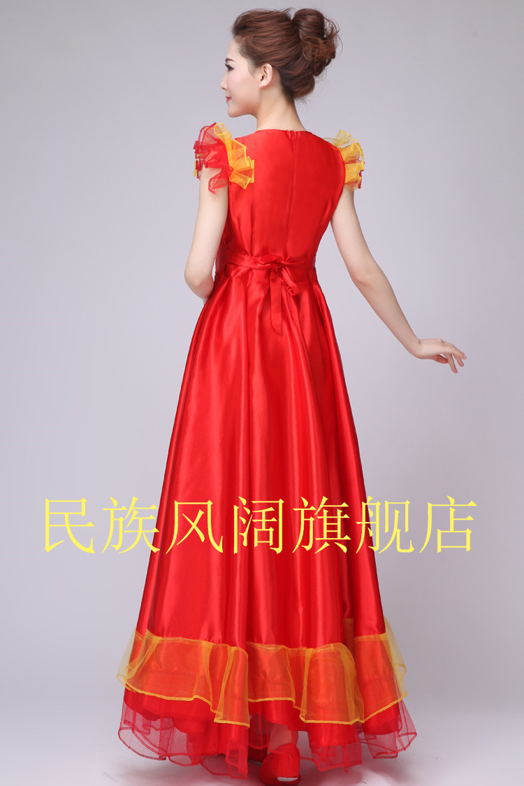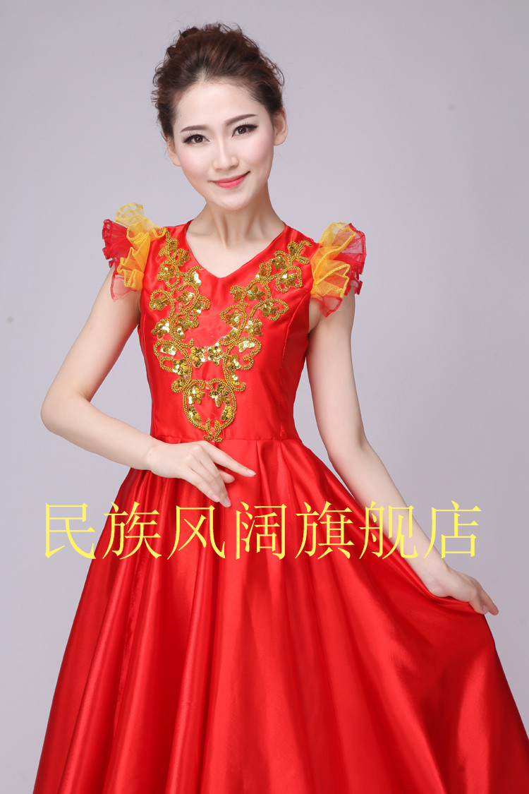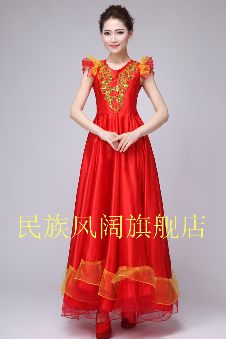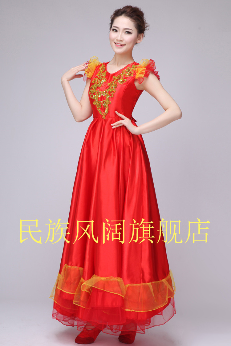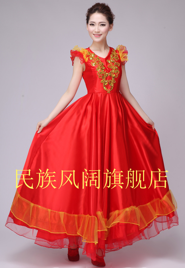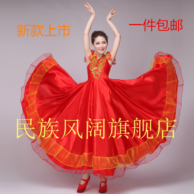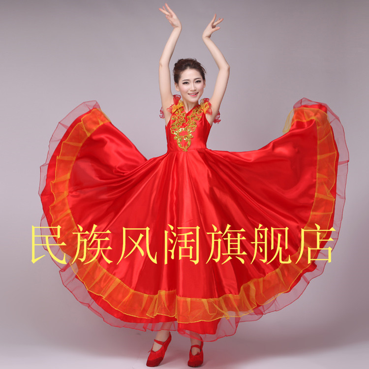 紅色540擺渡XXXXL新款舞蹈服大擺裙表演服大合唱服長裙服開場舞廣場服演出服裝