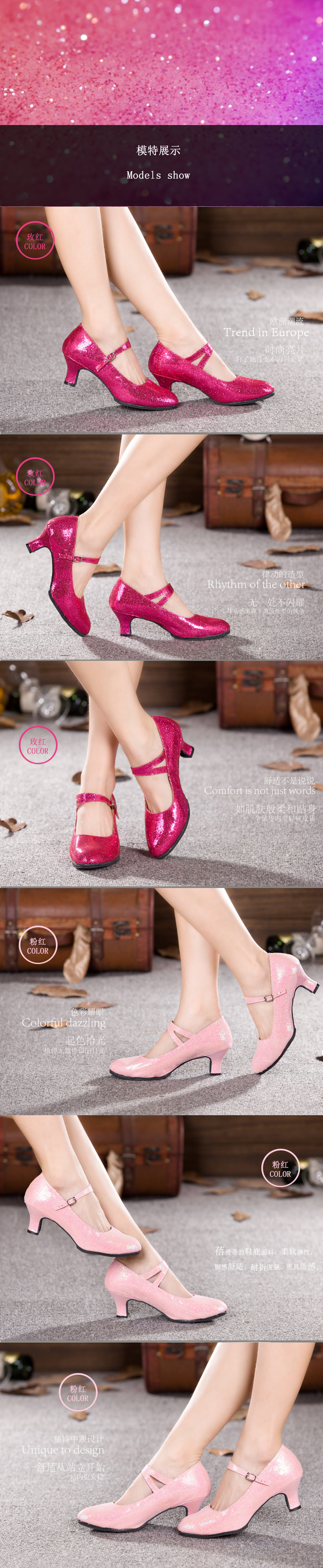 金色細亮片室內毛底33新款拉丁舞鞋 成人女 摩登舞鞋 中高跟 廣場交誼舞鞋42- 43大碼