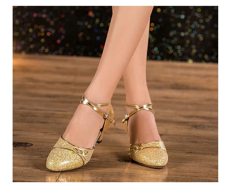 金色室外膠底34新款女士成人女中跟拉丁舞鞋包頭高跟舞蹈鞋摩登舞鞋廣場舞鞋