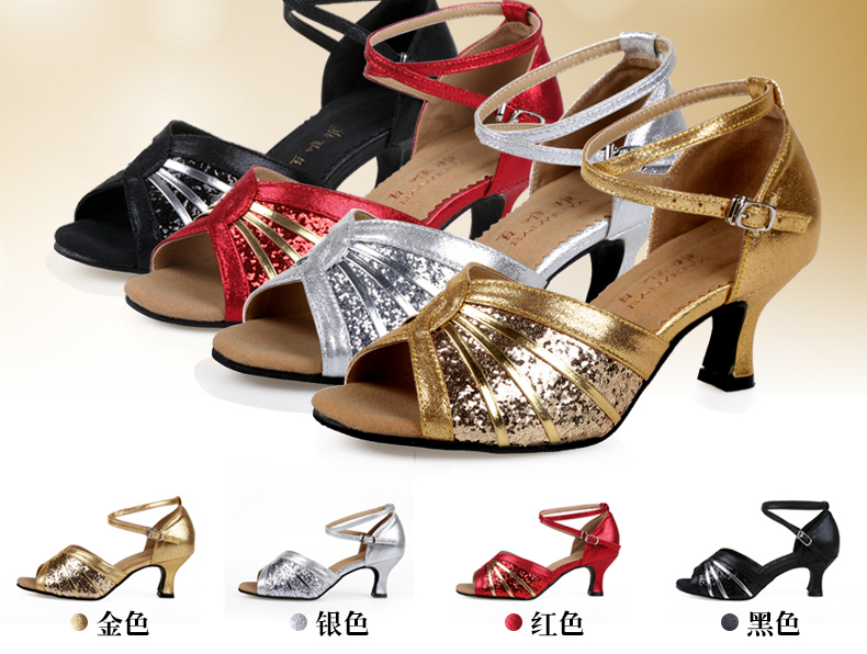 金色室外膠底34金色拉丁舞鞋子女中跟成人軟底恰恰交誼跳廣場舞蹈鞋夏季涼鞋魚嘴