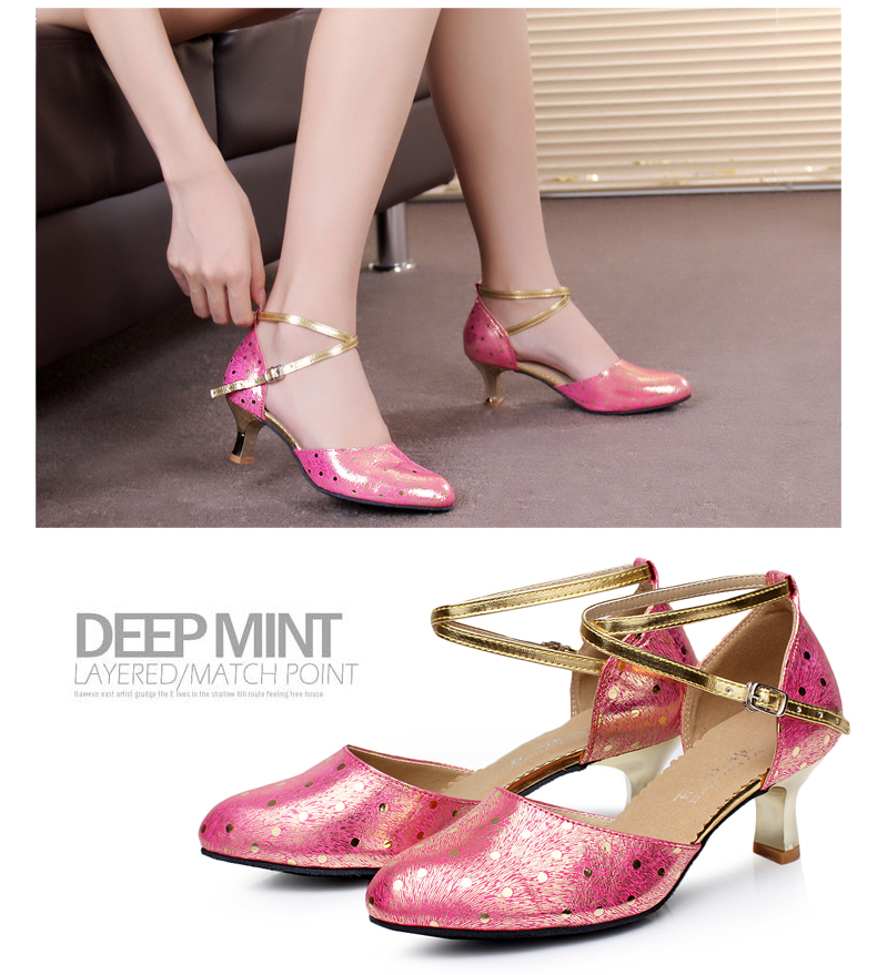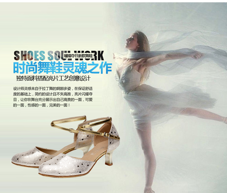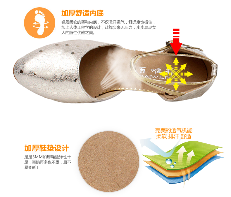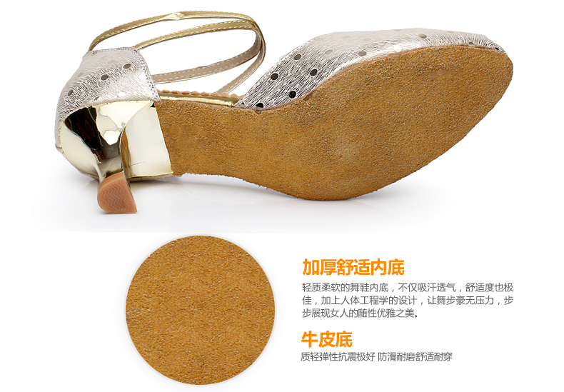 金色室外膠底34正品拉丁舞鞋女式夏涼鞋真皮廣場舞鞋成人中跟軟底牛皮交誼舞蹈鞋