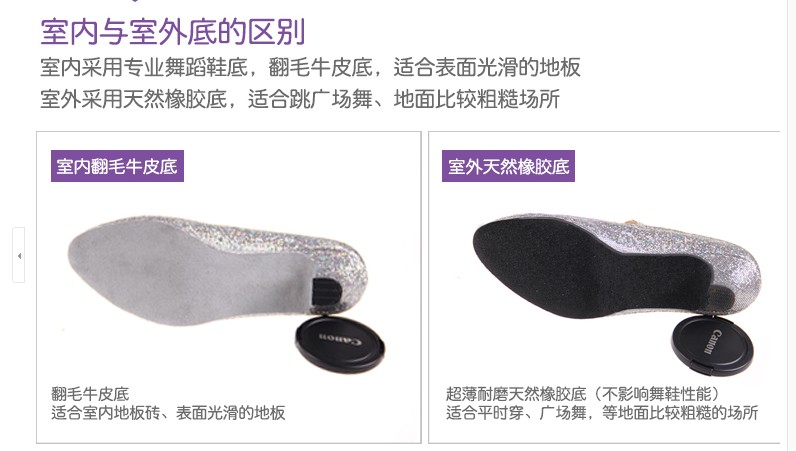 室內:翻毛牛皮底,適合表面光滑的地板、大理石、木地板、舞廳等場所跳舞