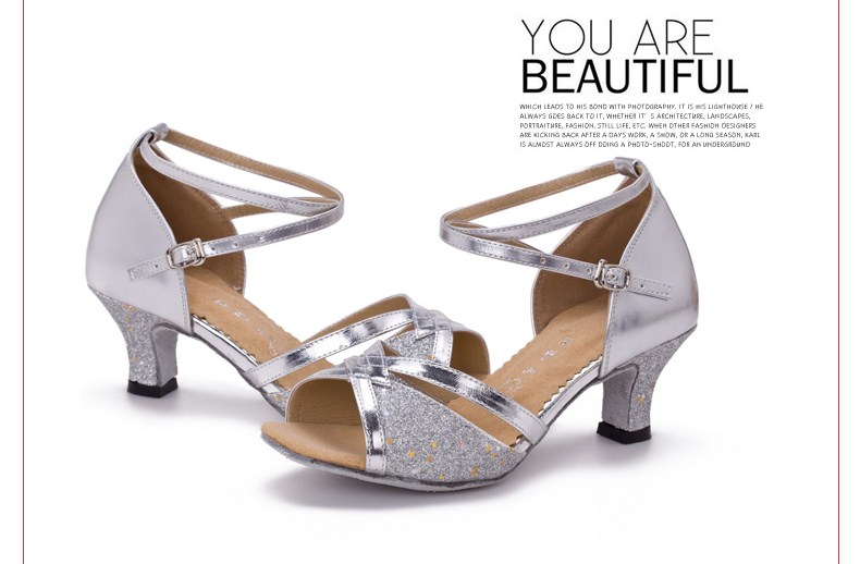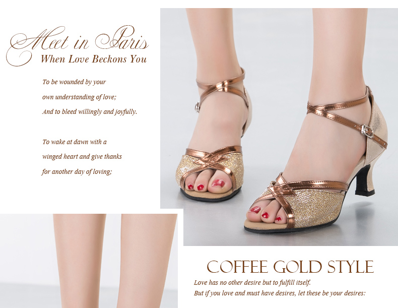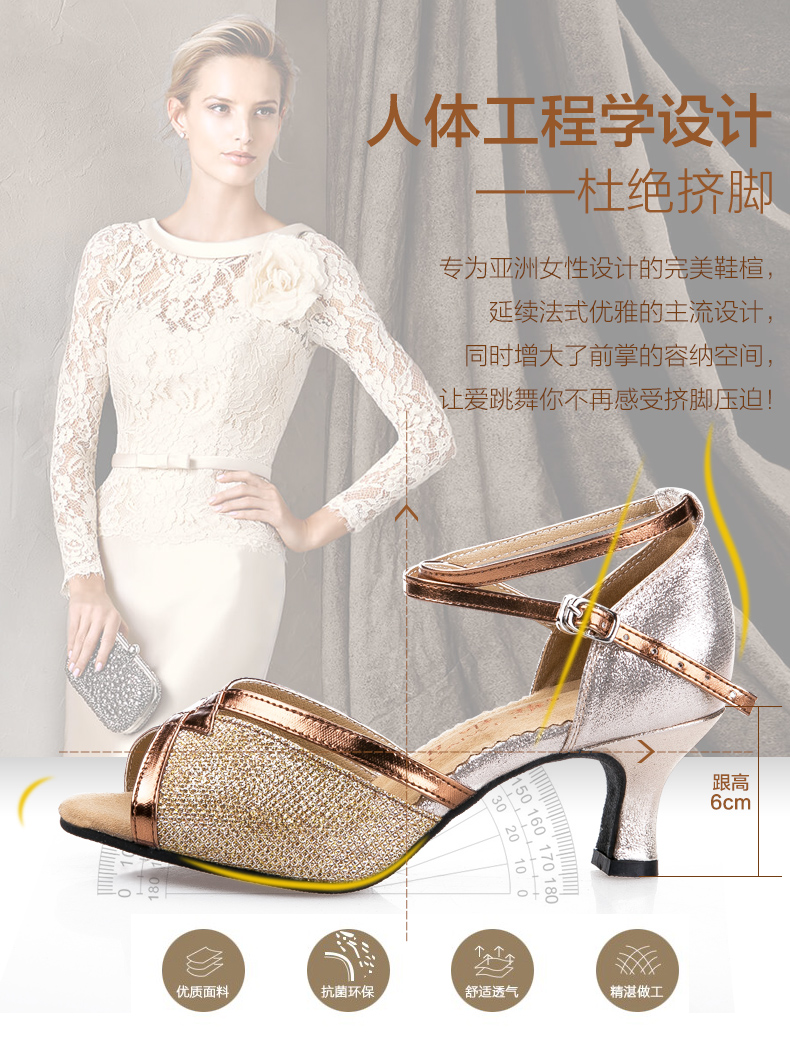 金色室內34金色拉丁舞鞋女式成人夏季涼鞋中跟軟底 跳廣場舞蹈鞋 交誼舞鞋