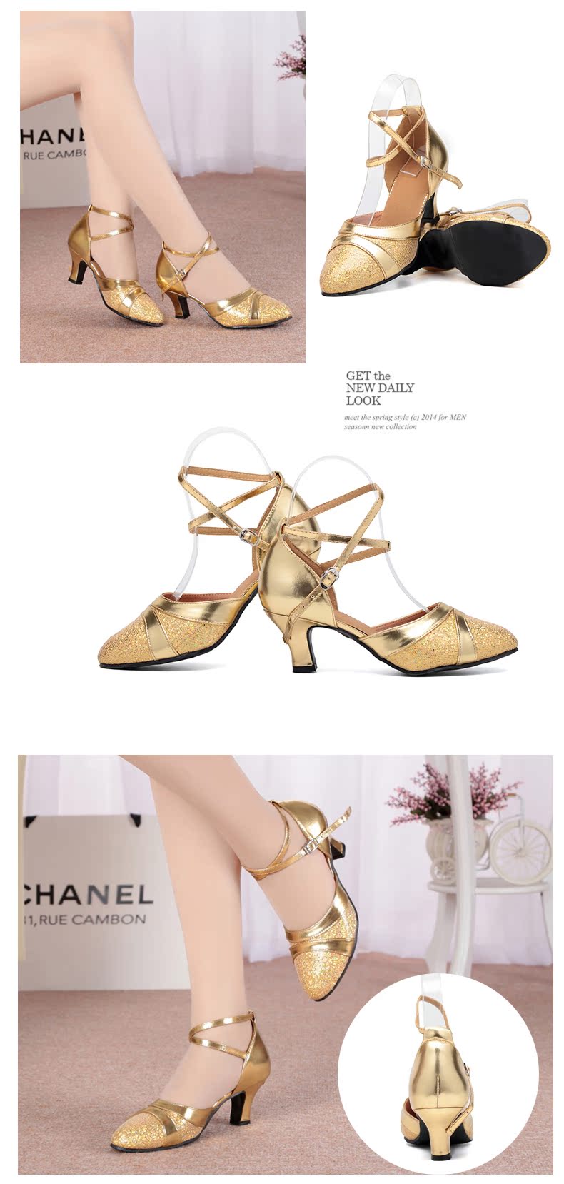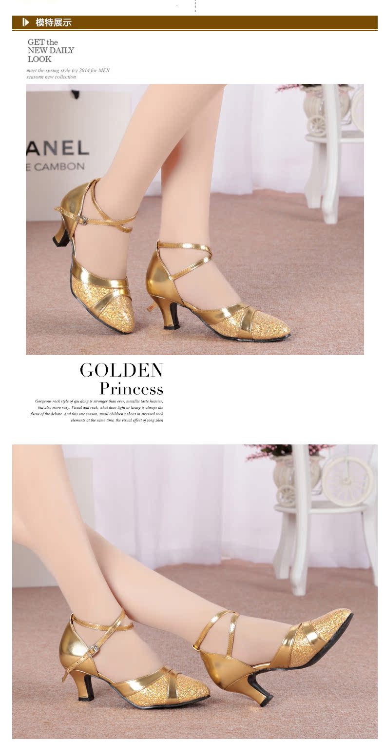 金色5.5膠底34熱賣新款拉丁舞鞋女夏季成人 軟底中跟廣場舞鞋交誼舞鞋舞蹈涼鞋