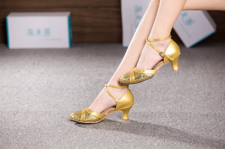 金色3.5跟毛底(室內款)34熱賣女士拉丁舞鞋女式成人舞蹈鞋廣場舞蹈鞋低跟中跟高跟摩登舞鞋