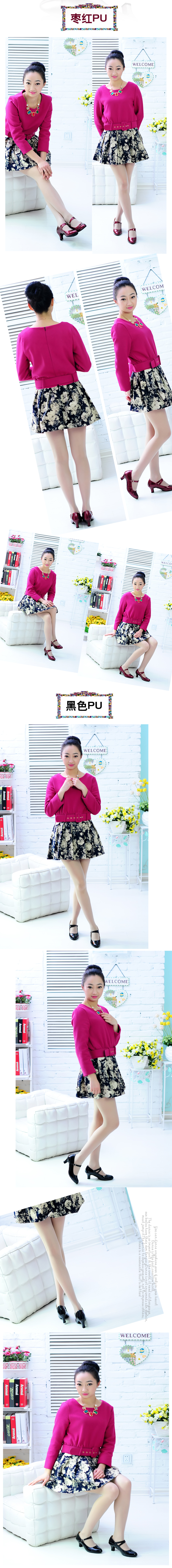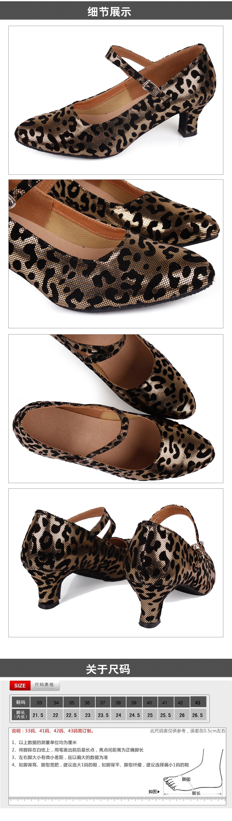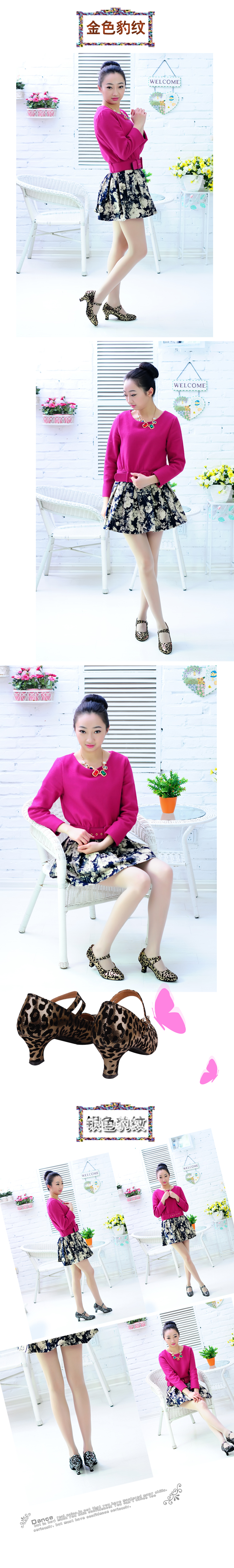 金PU室外加掌34豹紋拉丁舞鞋 女式中跟成人軟底 交誼舞鞋廣場舞鞋摩登舞鞋 低跟