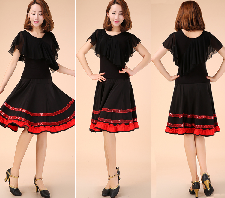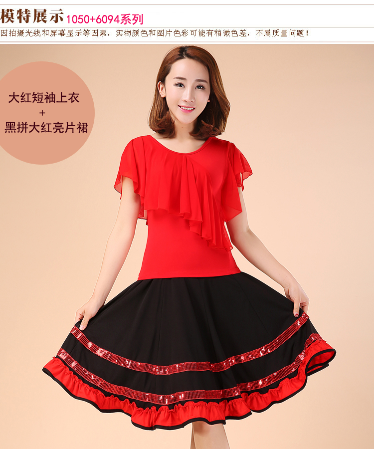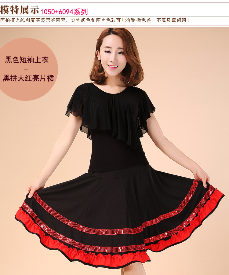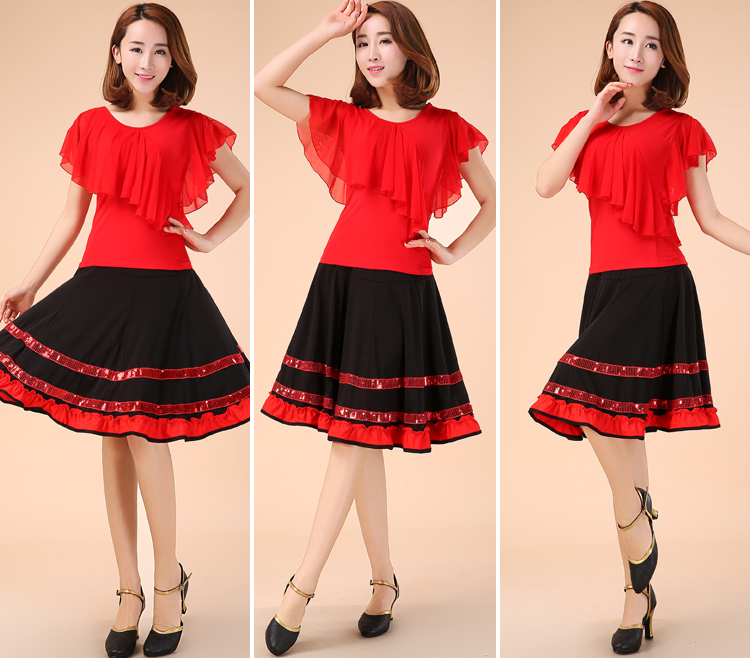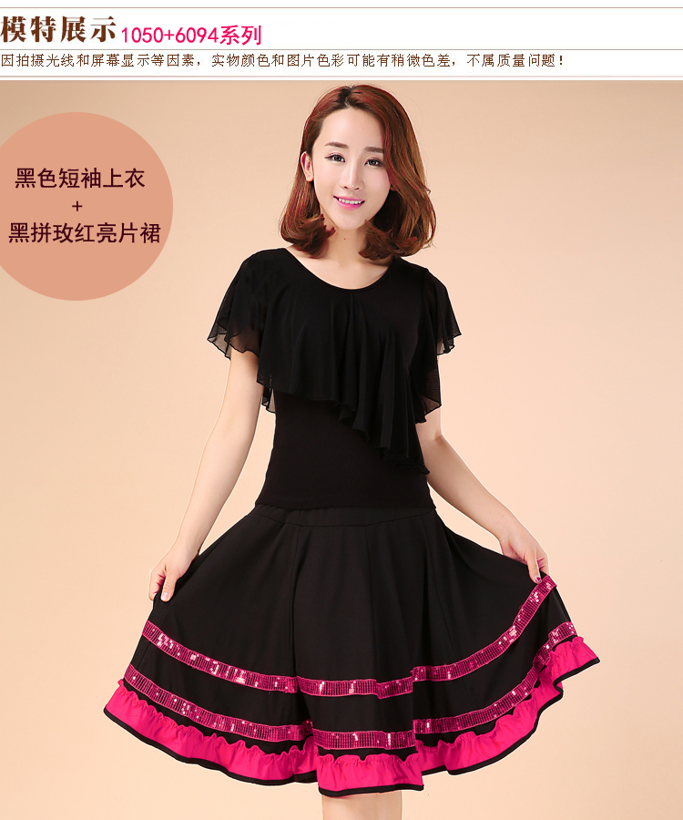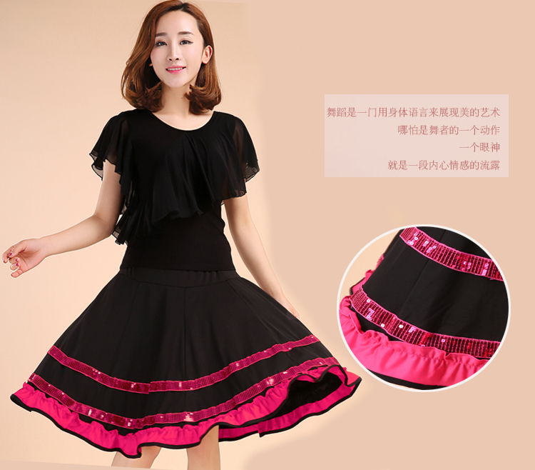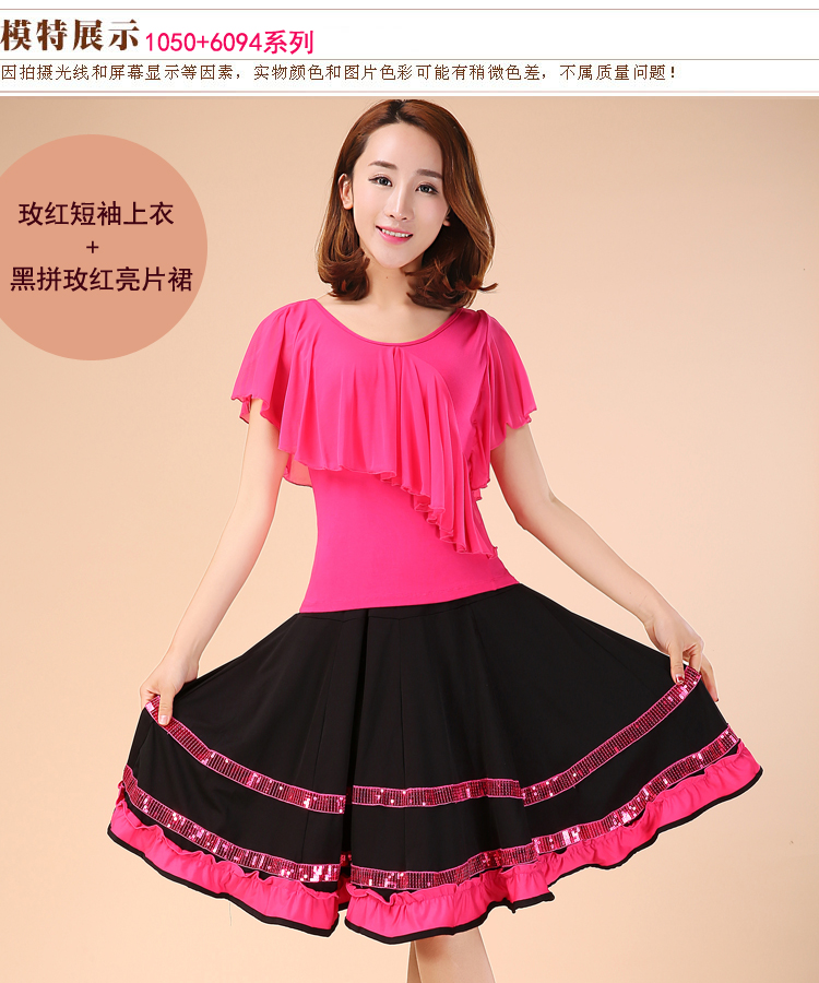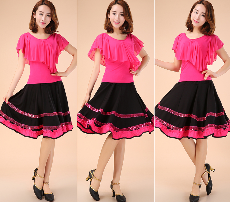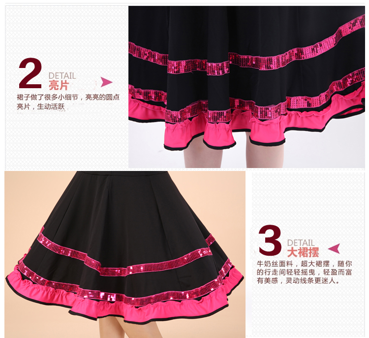 玫紅色M新款廣場舞蹈服裝大擺裙女成人拉丁舞交誼舞蹈亮片裙跳舞大碼裙子