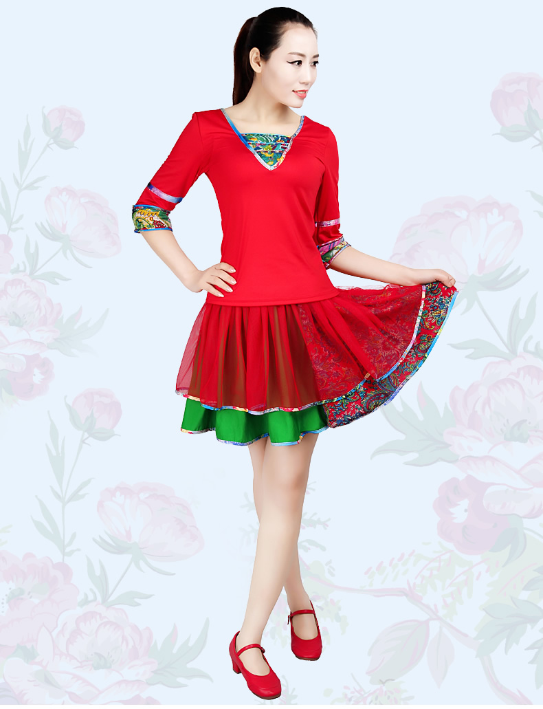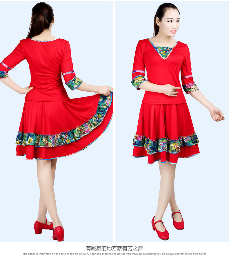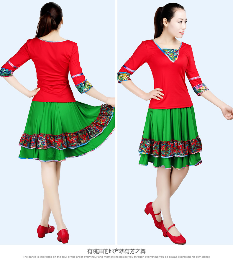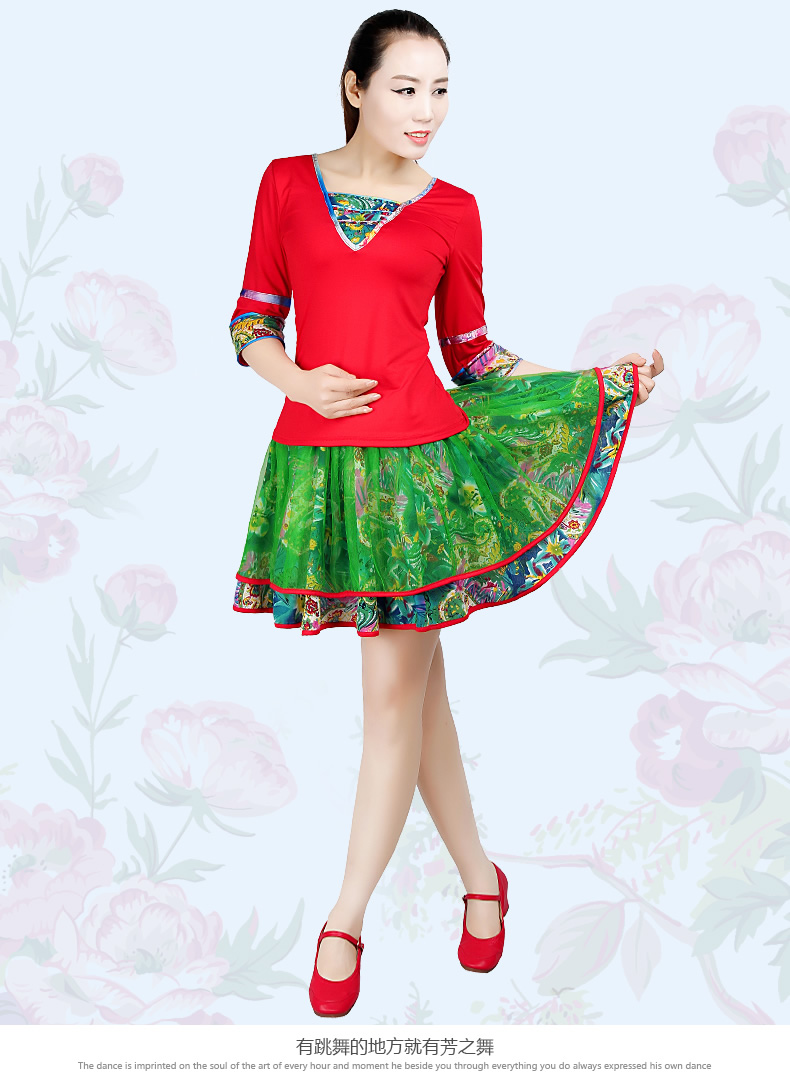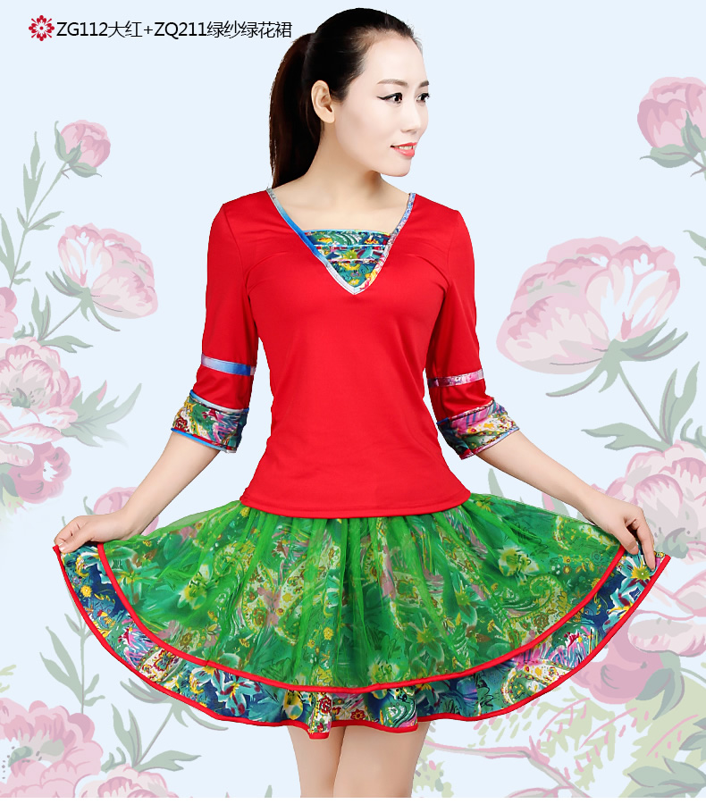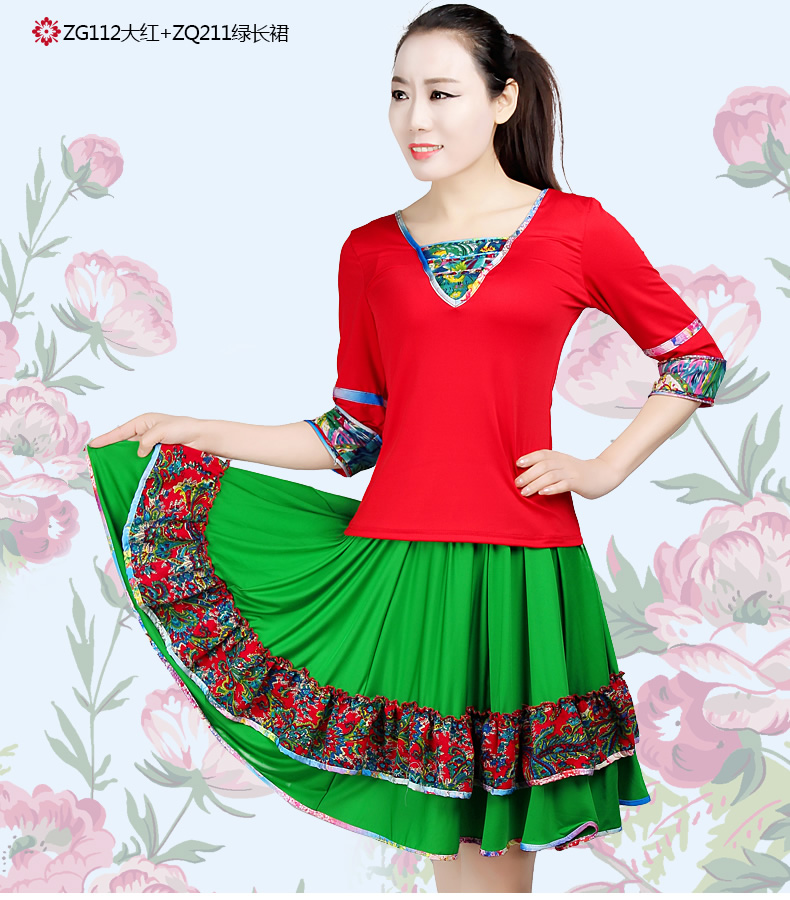 ZG112大紅+ZQ211綠長裙均碼芳之舞2016新款廣場舞服裝套裝春季上衣大擺裙跳舞服拉丁舞表演服