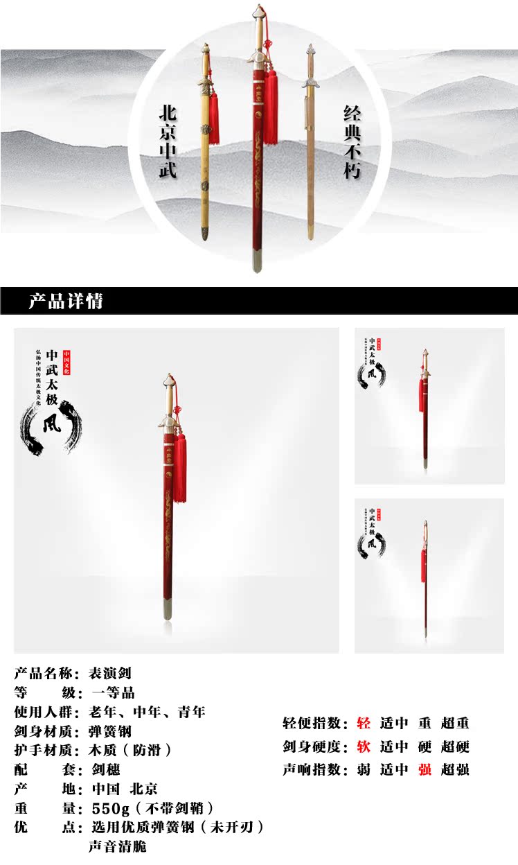 0號高檔武術表演劍晨練太極劍舞蹈劍 響劍 訓練劍 軟劍未開刃 送劍穗
